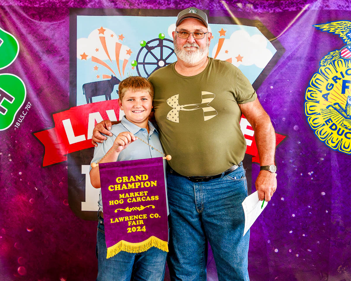 GRAND CHAMPION: Kaiden Bennet | Bid: $14/lb | Weight: 270 lbs | Buyer: Nick’s Autobody; RESERVE CHAMPION: Alexis Sherry | Bid: $4/lb | Weight: 275 lbs | Buyer: Dr. Jeff and Brenda McKissick; GRAND CHAMPION CARCASS: Brandon Nicklas, Jr. | Bid: $5/lb| Weight: 297 lbs | Buyer: Mike Nicklas; RESERVE CHAMPION CARCASS: Casen Osborne | Bid: $5.50/lb | Weight: 259 lbs | Buyer: In Memory of Ken Luckock