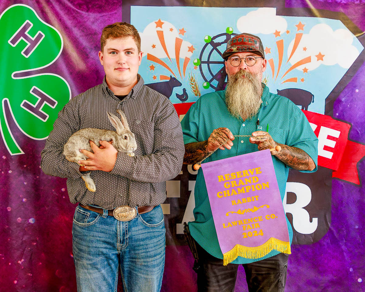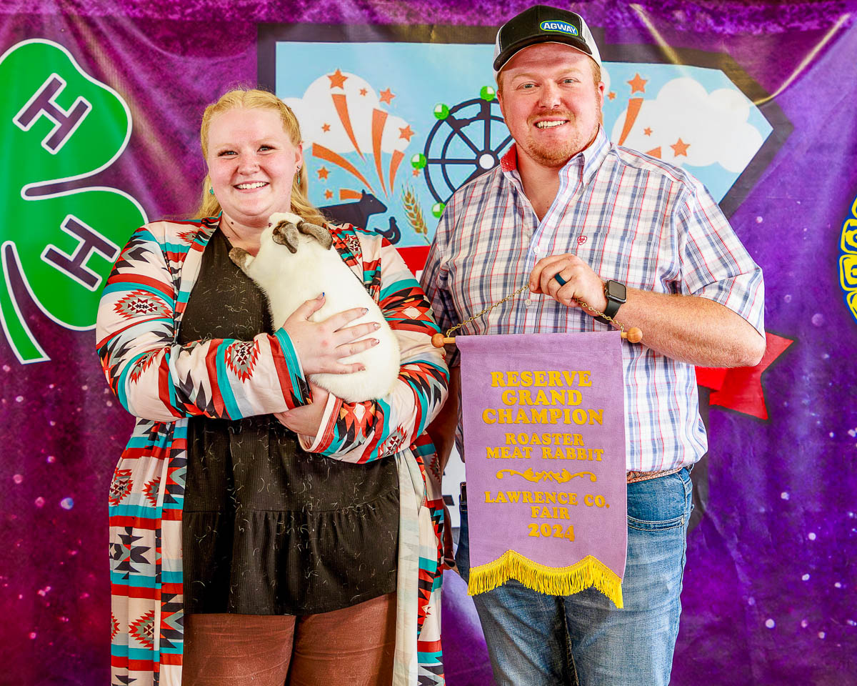 GRAND CHAMPION: Kayla Mackrell | Bid: $450 | Weight: 10.9 lbs | Buyer: Mahle Chiropractic; RESERVE CHAMPION: Caleb Miller | Bid: $350 | Weight: 11.1 lbs | Buyer: Altmeyers Western Wear