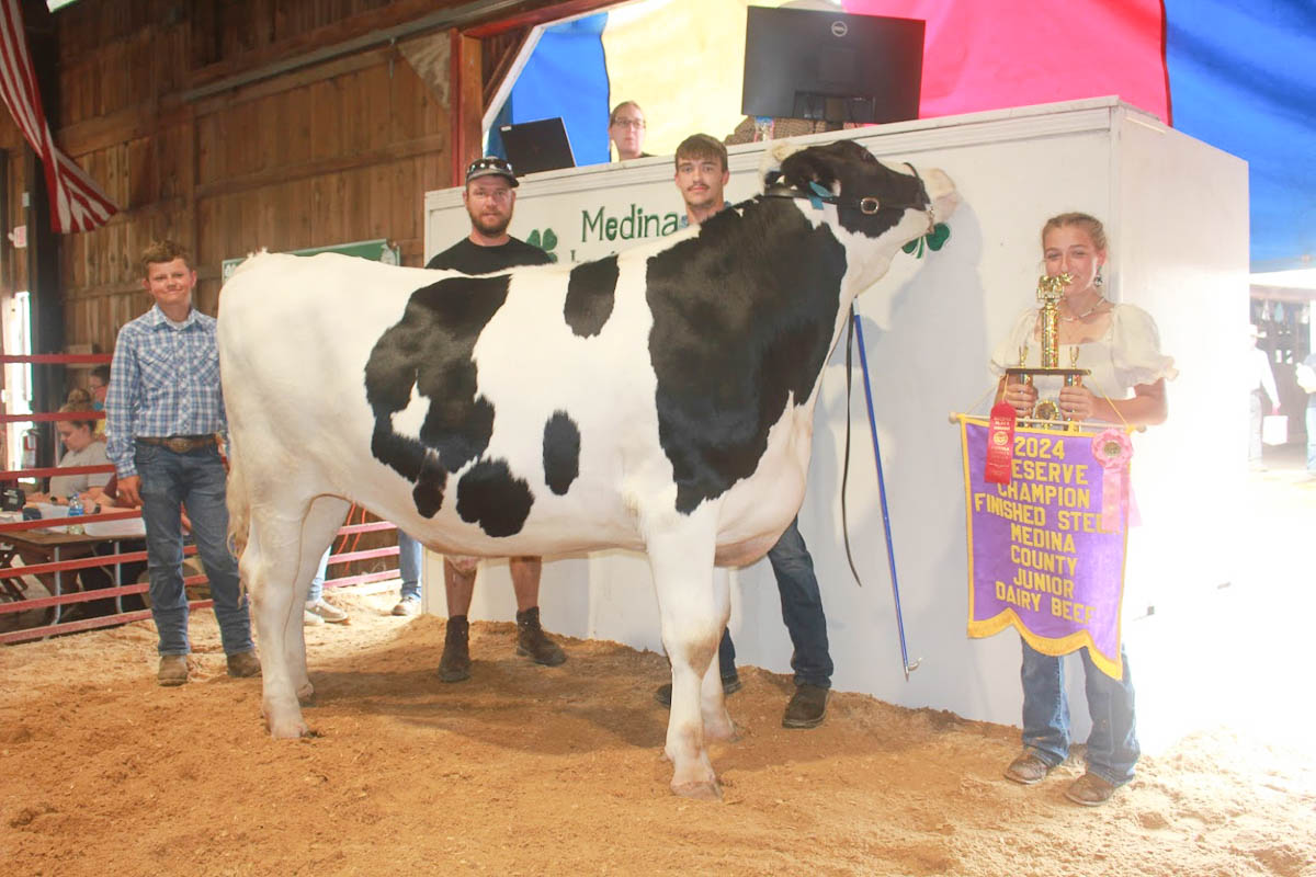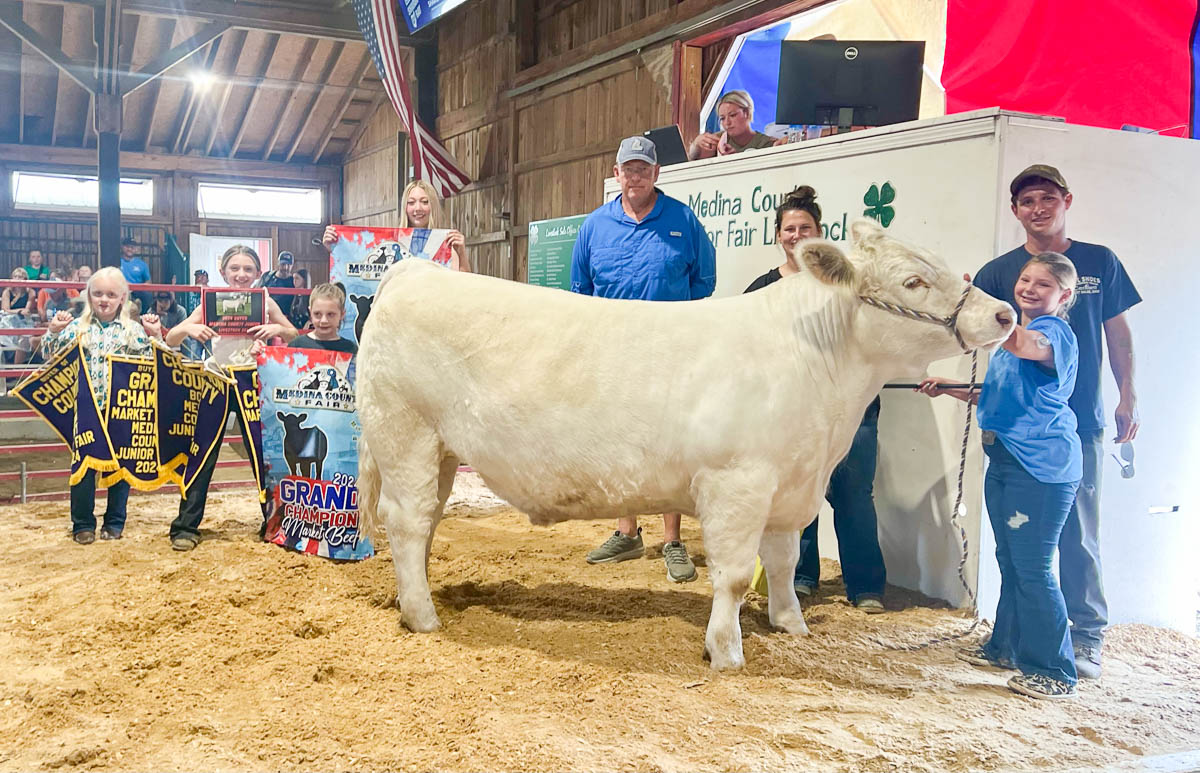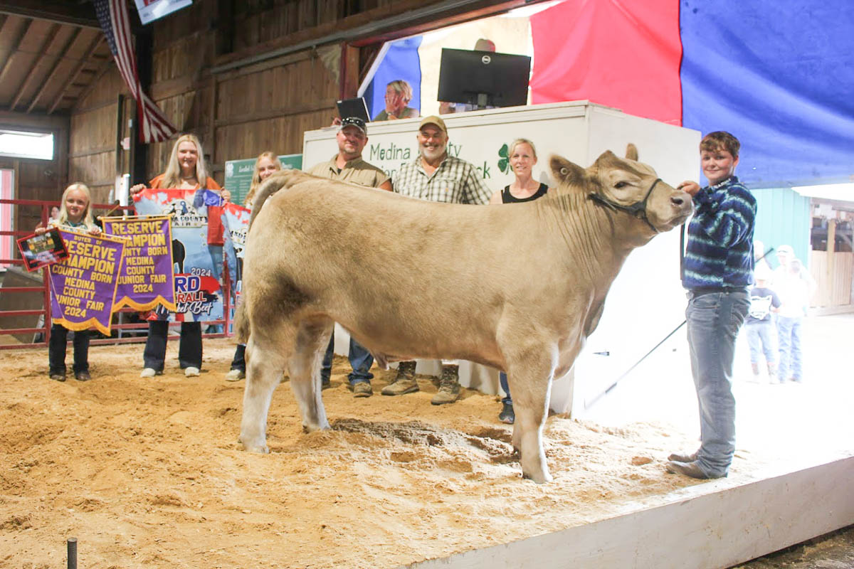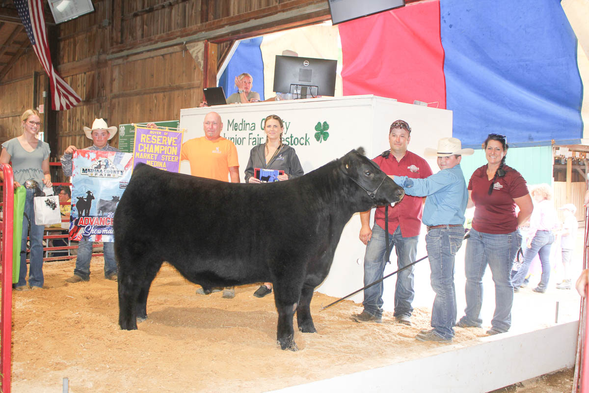 GRAND CHAMPION:Kennedy Hagenbaugh | Bid: $9,500 |Weight: 1,445 lbs | Buyer: AG Design; RESERVE CHAMPION: Garrett Reusch | Bid: $12,000 | Weight: 1,320 lbs | Buyer: Gene’s Refrigeration; RESERVE CHAMPION BORN AND RAISED: Gerry Smith III | Bid: $6,000 | Weight: 1,465 lbs |Buyer: Albrecht Trucking; GRAND CHAMPION CARCASS: Bailey Bishop | Bid: $10,000 | Weight: 741 lbs | Buyer: Sandridge Food Corporation; RESERVE CHAMPION CARCASS: Cheyenne Mace | Bid: $5,000| Weight: 806 lbs | Buyer: Shaw Trucking and Excavating