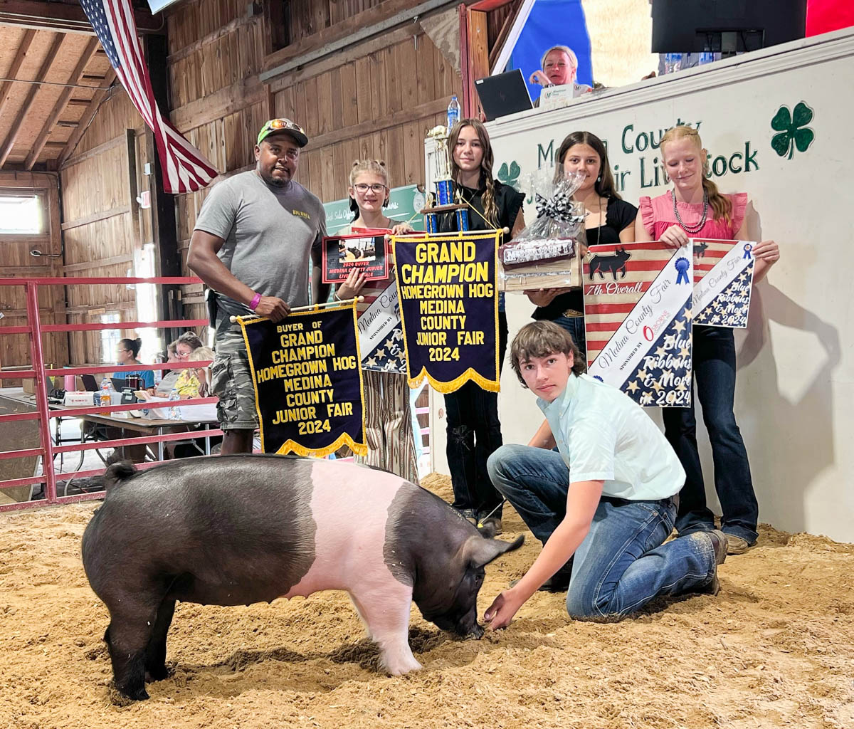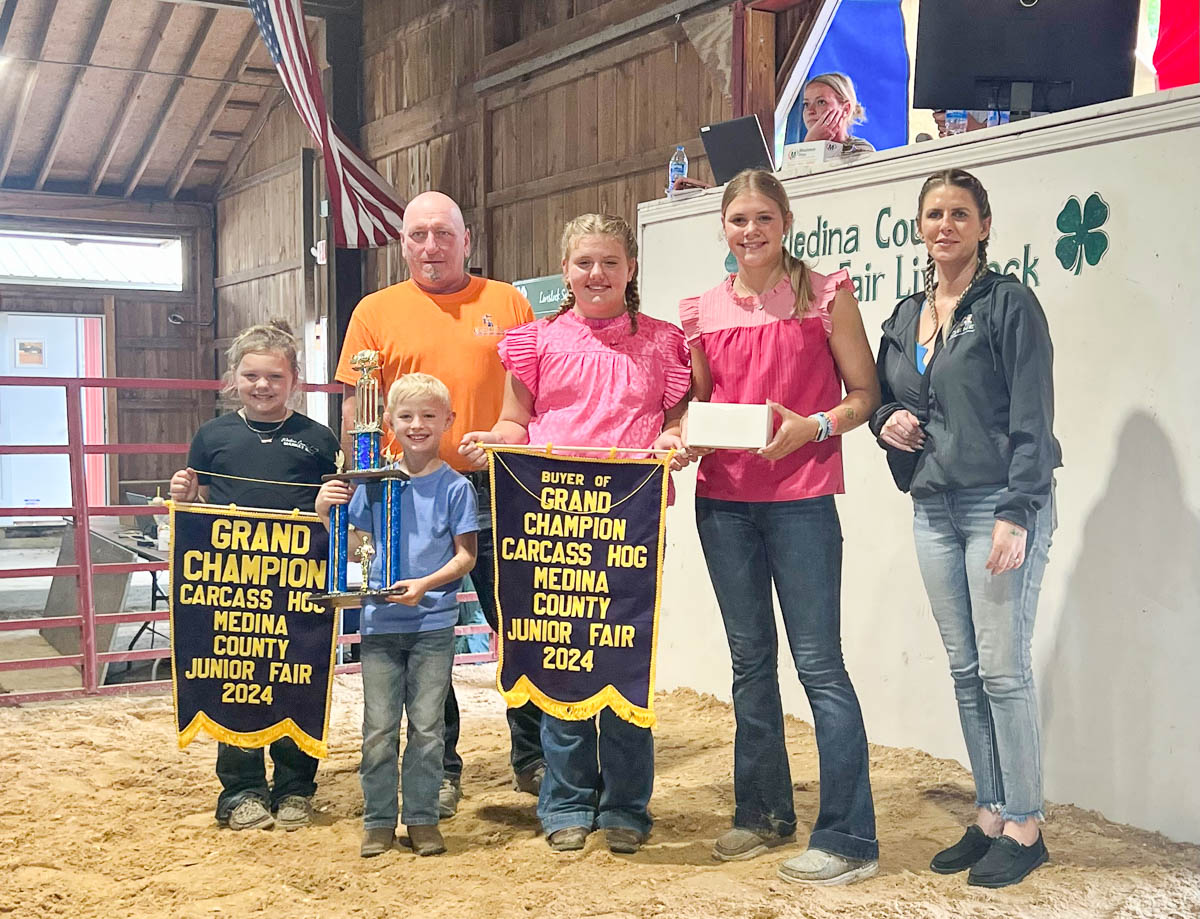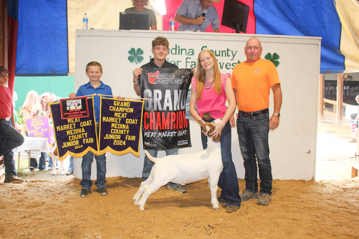 GRAND CHAMPION: Gabriella Izzo | Bid: $2,100 | Weight: 140 lbs | Buyer: Gene’s Refrigeration; RESERVE CHAMPION: Carter Kovalik | Bid: $1,700 | Weight: 131 lbs | Buyer: Fechko Excavating; GRAND CHAMPION CARCASS: Blake Swanson | Bid: $700 | Weight: 60 lbs | Buyer: Jarrell Roofing; RESERVE CHAMPION CARCASS: LUKE FARNSWORTH | Bid: $1,200 | Weight: 62lbs | Buyer: Farnsworth Auctions LLC