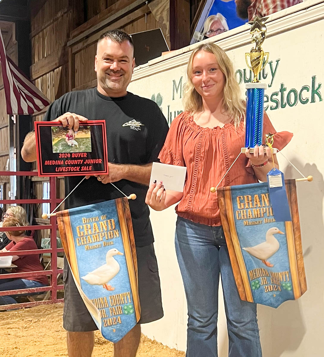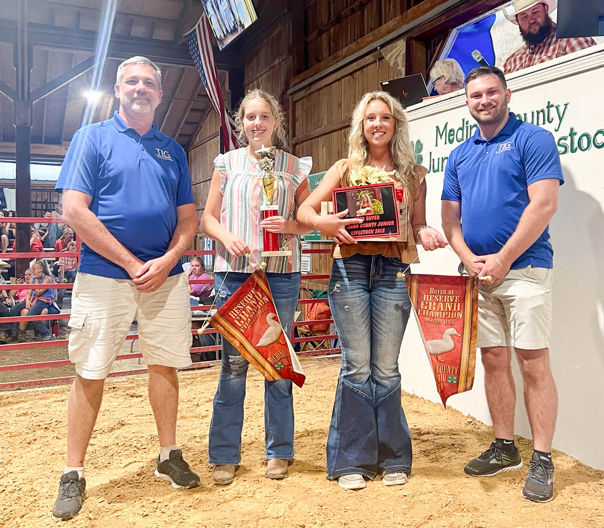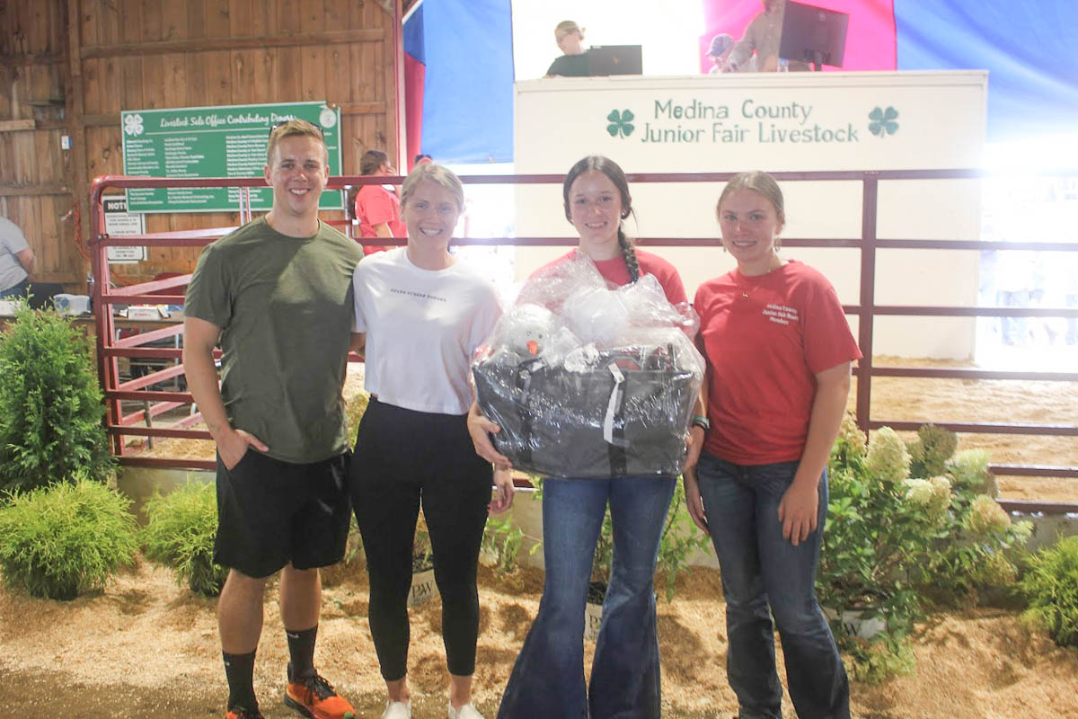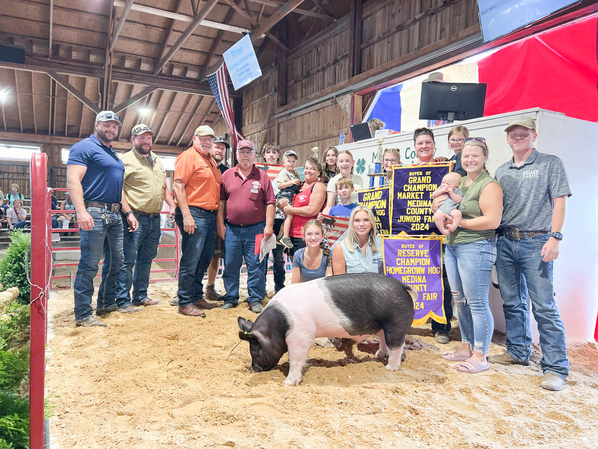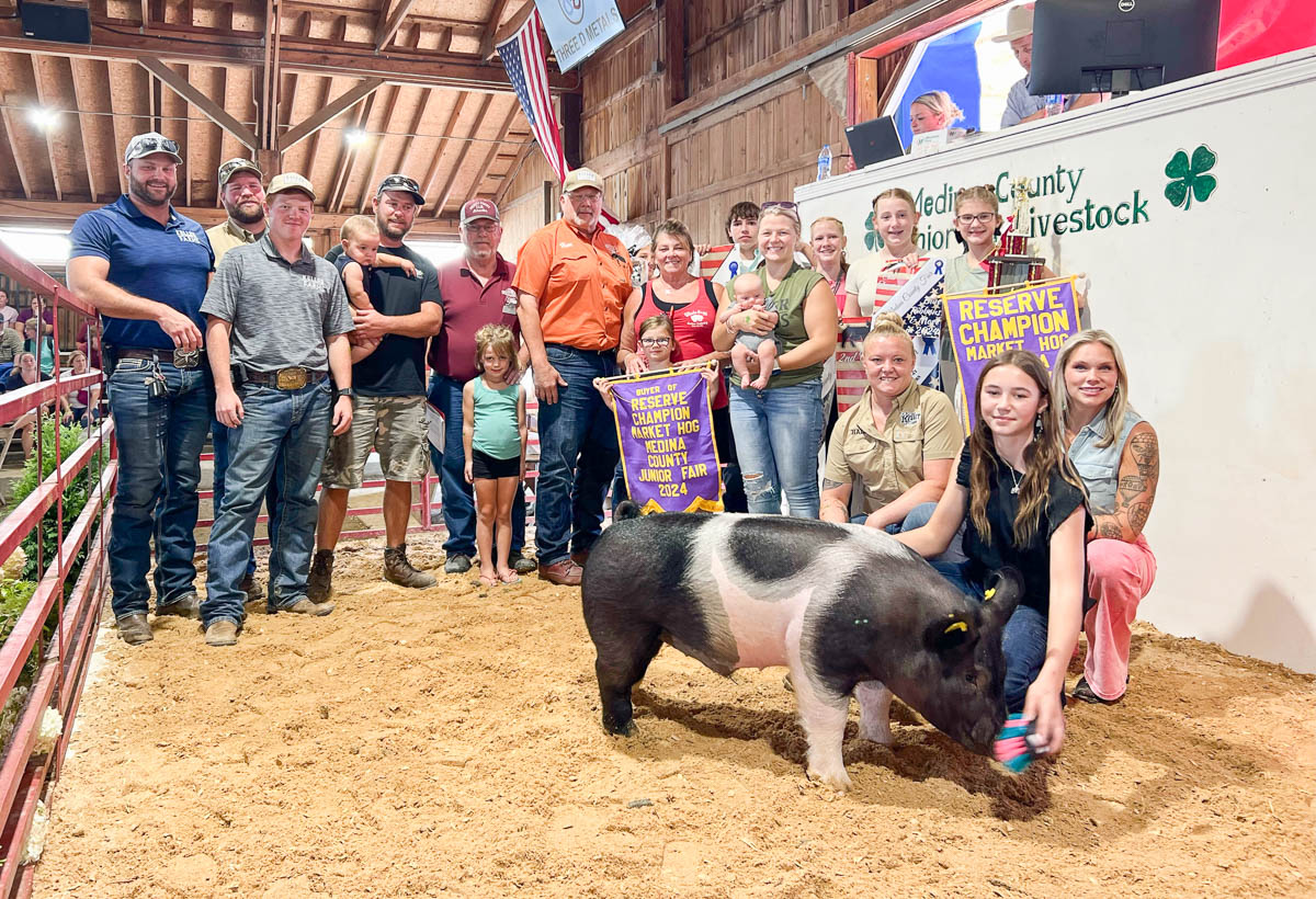 GRAND CHAMPION: Zoey Chung | Bid: $4,750 | Weight: 665 lbs | Buyer: Fechko Excavating; RESERVE CHAMPION: Karas Wedge | Bid: $2,500 | Weight: 660 lbs | Buyer: Shaw Trucking & Excavating