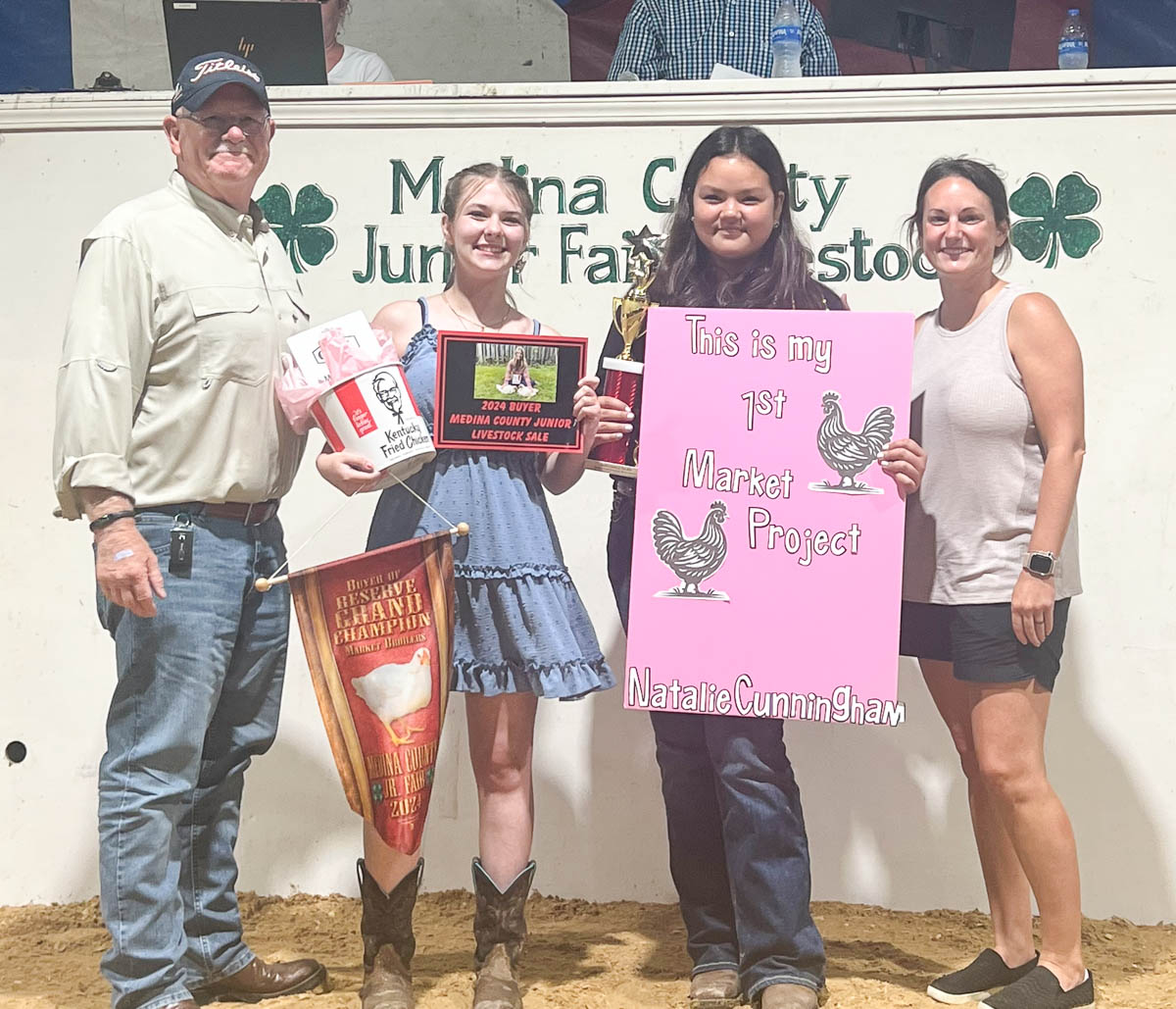 GRAND CHAMPION: Anna Farnsworth | Bid: $2,500 | Weight: 6.9 lbs |Buyer: Smith Brothers; RESERVE CHAMPION: Summer Sooy | Bid: $900 | Weight: 6 lbs | Buyer: Trent Insurance Group