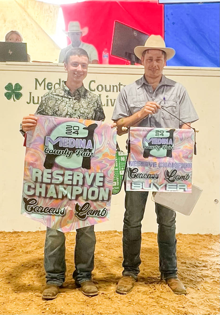 GRAND CHAMPION: Ryan Graves | Bid: $1,100 | Weight: 98 lbs | Buyer: Forever Fence and Rail; RESERVE CHAMPION: Nicholas Gall | Bid: $700 |Weight: 67lbs | Buyer: Fairway Electric