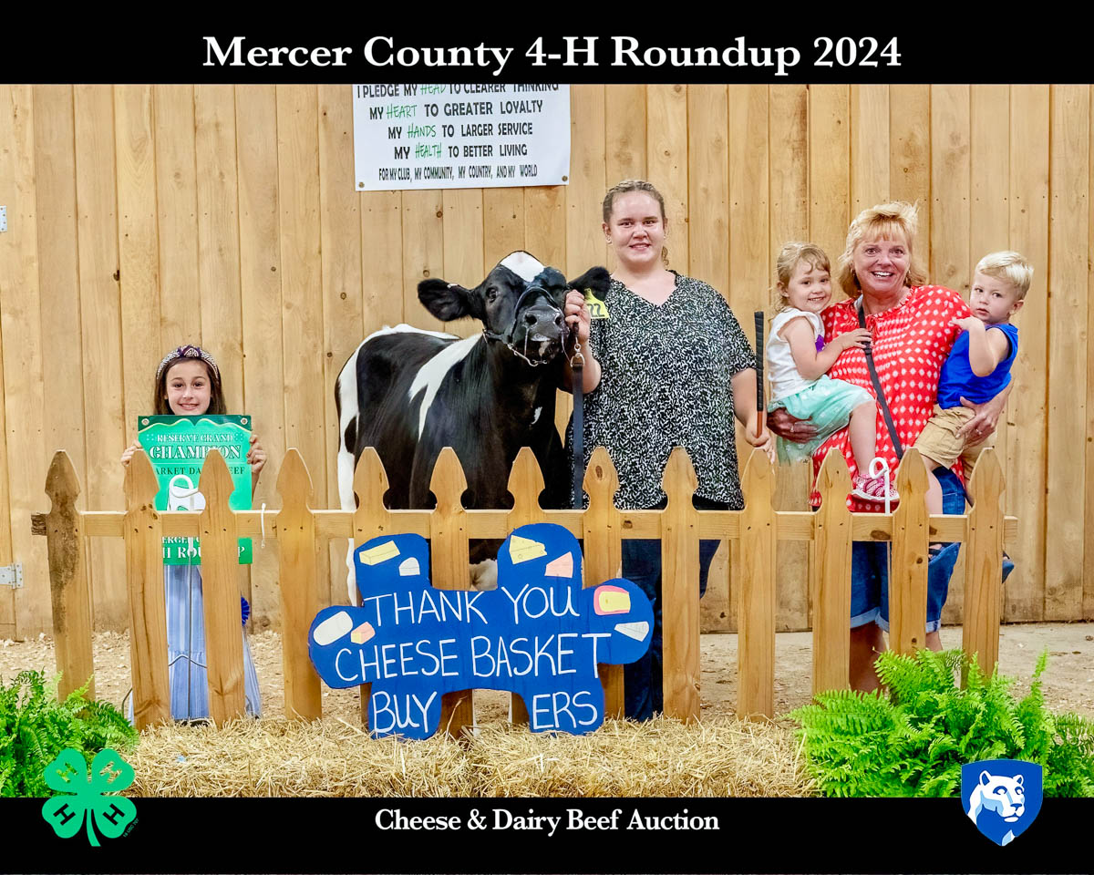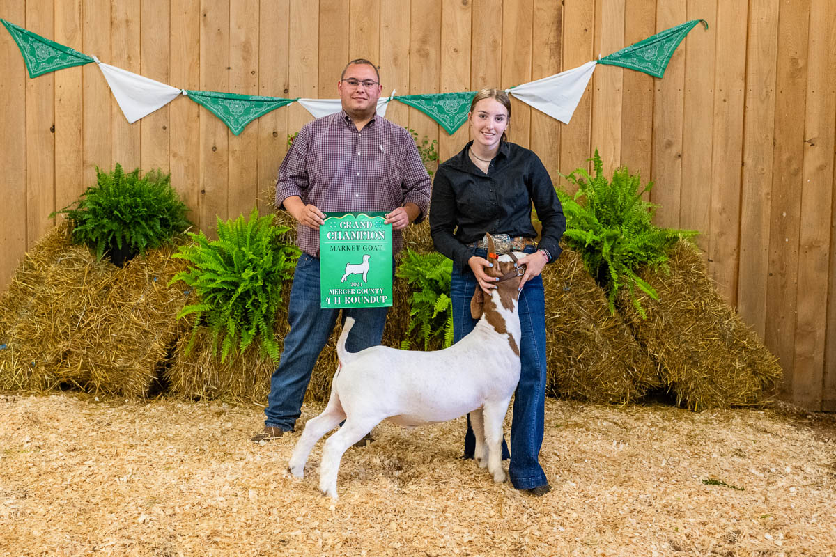 GRAND CHAMPION: Audrey Lawrence | Bid: $9/lb | Weight: 100 lbs | Buyer: D’Onofrio’s Food Center; RESERVE CHAMPION: Madelynn Helch | Bid: $8/lb | Weight: 68 lbs | Buyer: The Goat Bar and Grill & Miller’s Mercer Livestock Auction