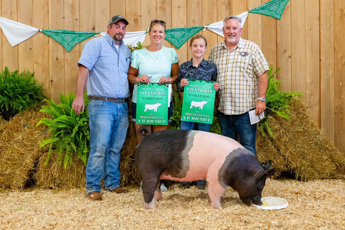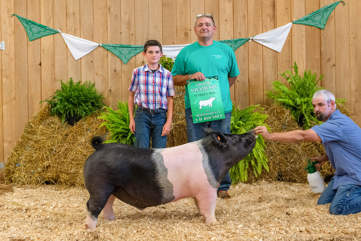 GRAND CHAMPION: Colton Ligo | Bid: $7.75/lb | Weight: 284 lbs| Buyer: Westford Milling Co; RESERVE CHAMPION: Sydnie Powell | Bid: $10.75/lb | Weight: 267 lbs | Buyer: American Crop Insurance & Book Family Seeds Sales LLC