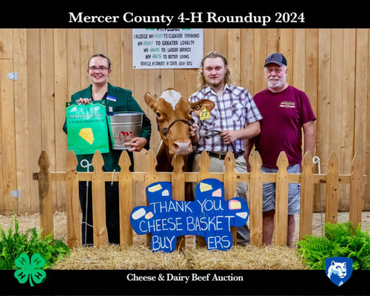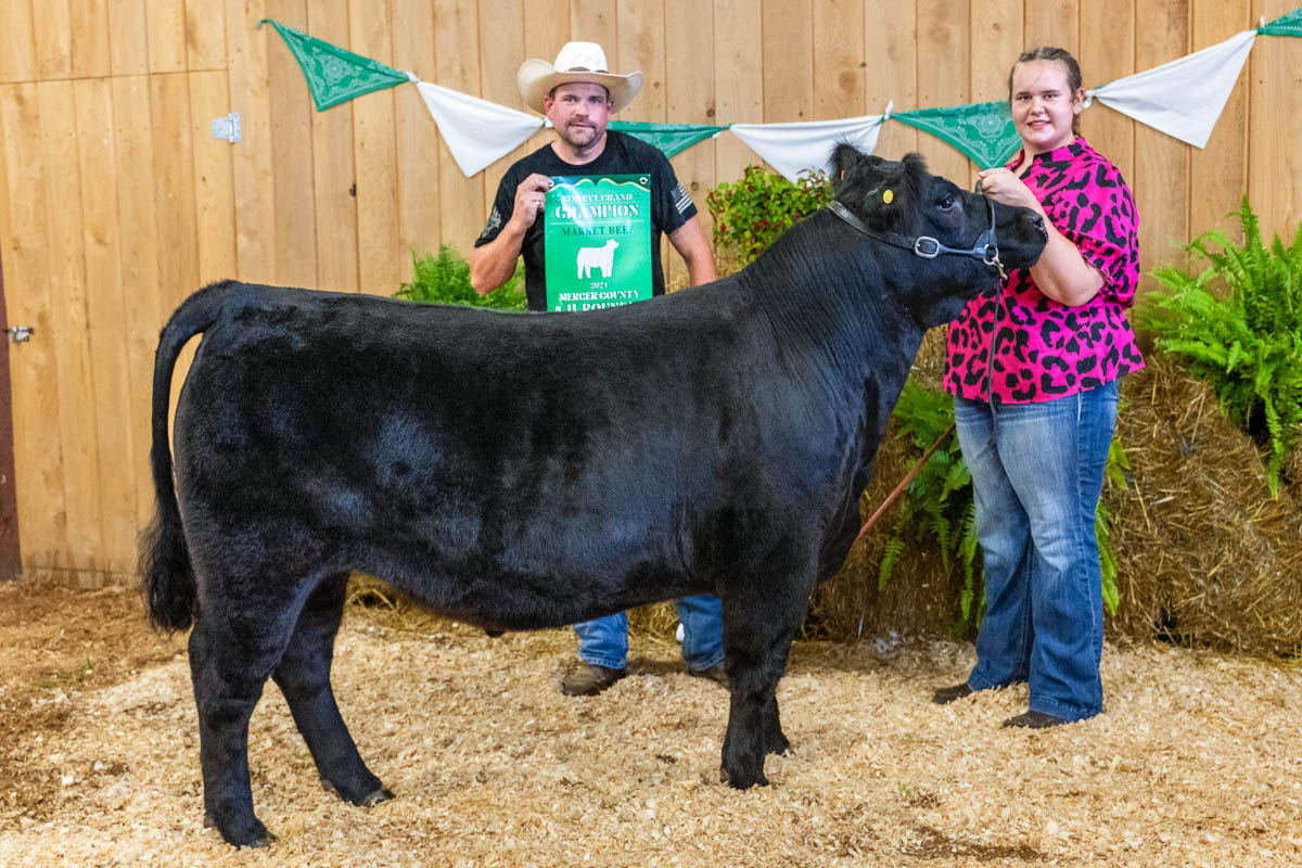 GRAND CHAMPION: Jordan Olson | Bid: $1,450 | Weight: 636 lbs | Buyer: Mercer County State Bank; RESERVE CHAMPION: Addison Olson | Bid: $1,250 | Weight: 764 lbs | Buyer: New NW Sales Company