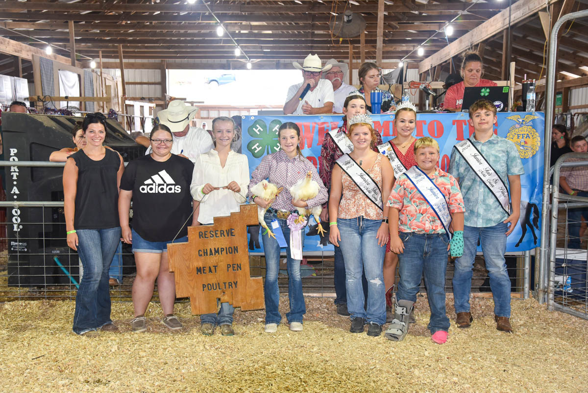 GRAND CHAMPION MEAT PEN: Cecelia Marshall | Bid: $2,000 | Weight: 15.4 lbs | Buyer: Encino Energy; RESERVE CHAMPION MEAT PEN: Sydney Erb | Bid: $2,000 | Weight 15 lbs | Buyers: Paige Gaydos, Atty at Law and Victoria Gaydos