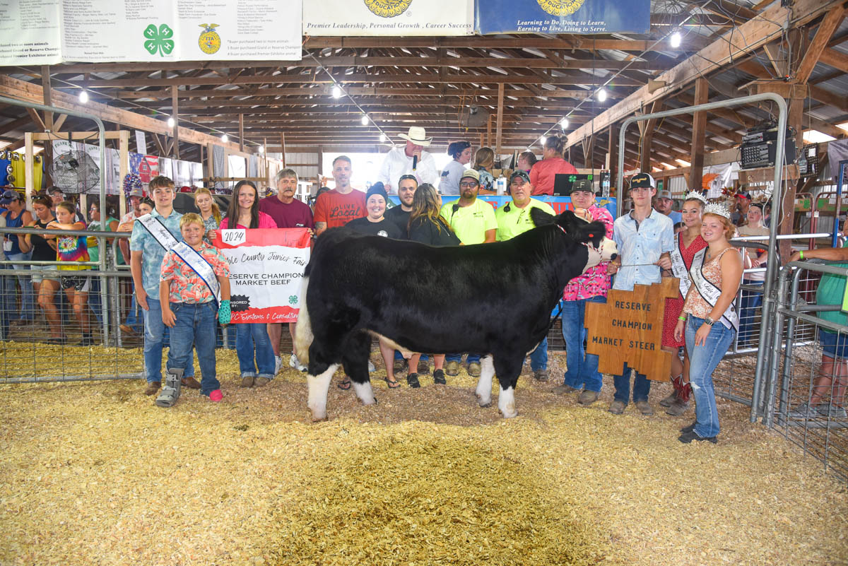 GRAND CHAMPION: Tyler Miller | Bid: $20,000 | Weight: 1,424 lbs |Buyer: Encino Energy; RESERVE CHAMPION: Tate Miller | Bid: $10,000 |Weight: 1,432 lbs |Buyer: Caldwell Eagles #2952