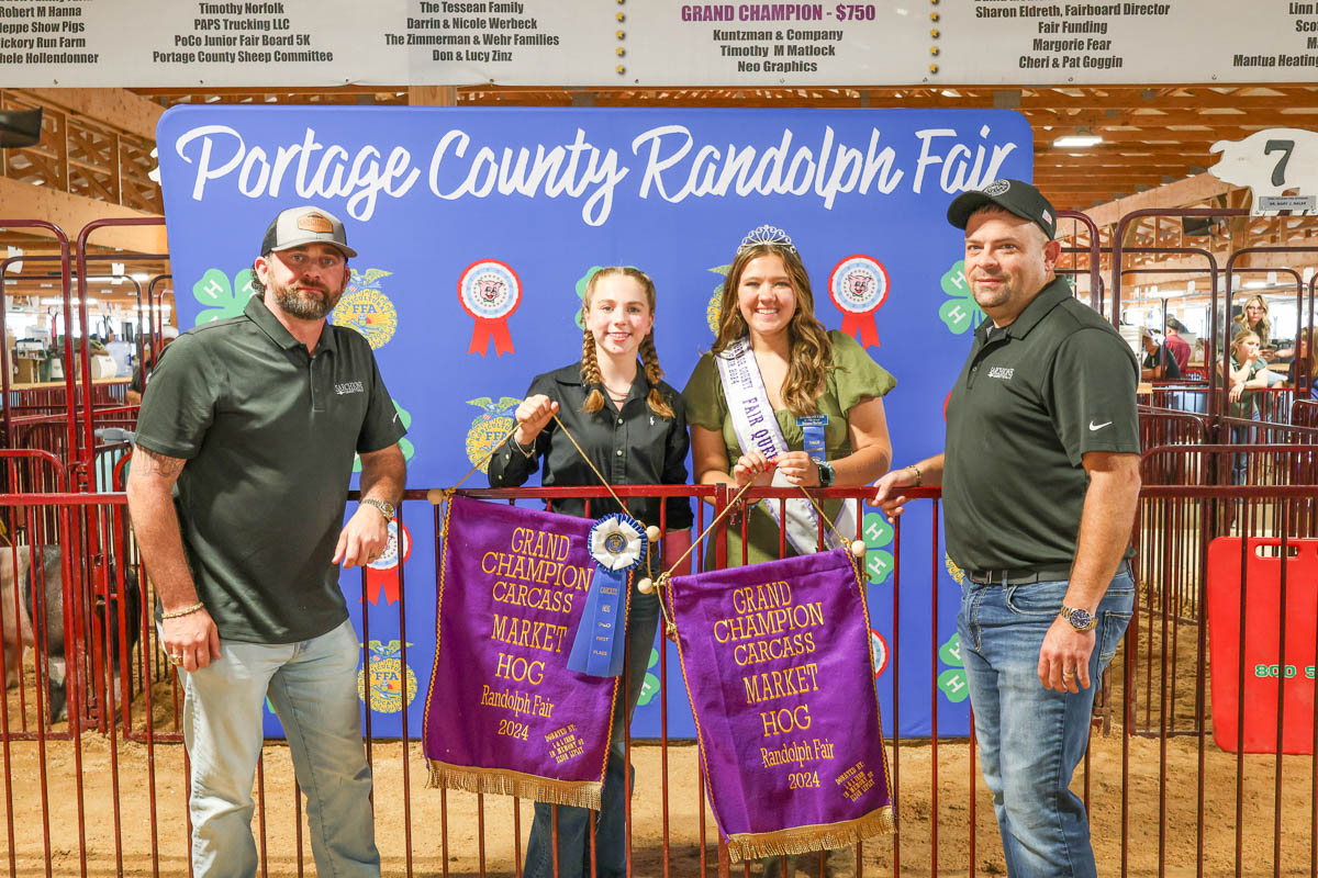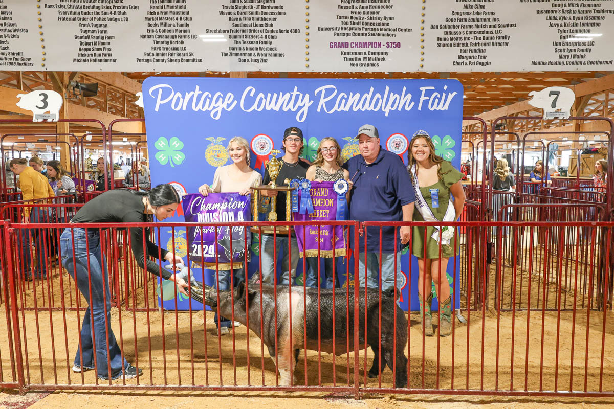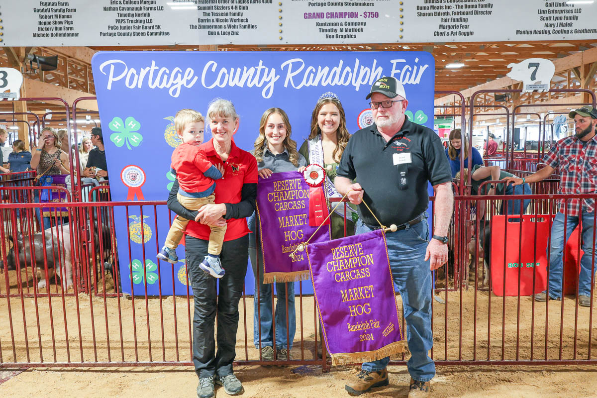 GRAND CHAMPION: Kamryn Lynn | Bid: $70/lb | Weight: 264 lbs | Buyer: Next Level Framing & Finishing LLC; RESERVE CHAMPION: Riley Grace | Bid: $20/lb | Weight: 243 lbs | Buyer: Sarchione Chevrolet – Randolph; GRAND CHAMPION CARCASS HOG: Delaney Wilson-Scarl | Bid: $25/lb | Weight: 156 lbs | Buyer: Sarchione Chevrolet-Garrettsville; RESERVE CHAMPION CARCASS HOG: Daisy Zinz | Bid: $29/lb | Weight: 148 lbs | Buyer: Polen Meats
