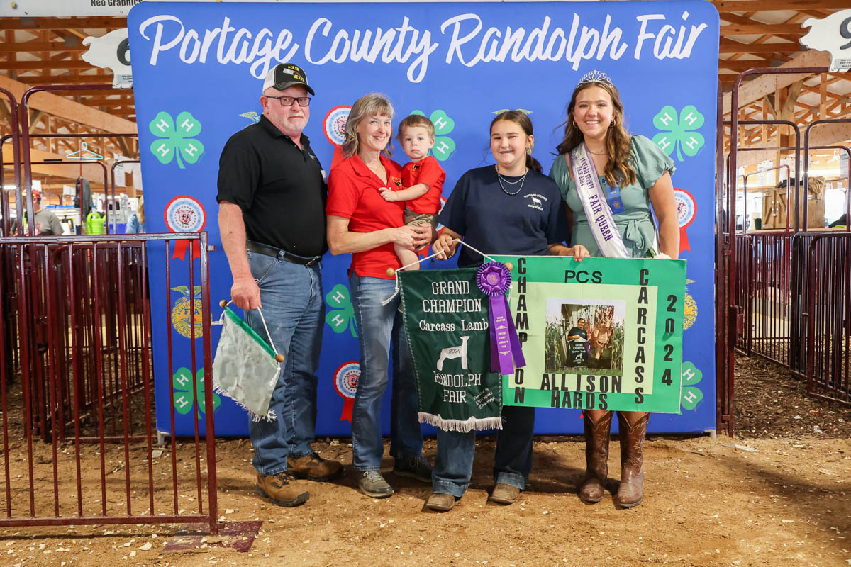 GRAND CHAMPION: Savannah White | Bid: $70/lb | Weight: 145 lbs | Buyers: Duma Meats and Dozer Machine; RESERVE CHAMPION: Savannah White | Bid: $37/lb | Weight: 154 lbs | Buyer: Pero Farms; GRAND CHAMPION CARCASS LAMB: Allison Hards | Bid: $22/lb | Weight: 56 lbs | Buyer: Polen Meats; RESERVE CHAMPION CARCASS LAMB: Hannah Skinner | Bid: $12/lb | Weight: 76 lbs | Buyer: Paul Adelman Trucking