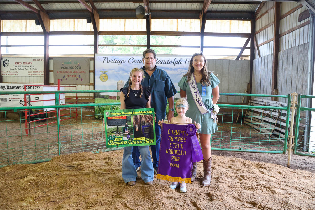 GRAND CHAMPION: Lillianna Giulitto | Bid: $12/lb | Weight: 1,460 lbs | Buyer: MAC Trailer Enterprises; RESERVE CHAMPION: Gracie Giulitto | Bid: $14/lb | Weight: 1,385 lbs | Buyer: United Earthworks LLC; GRAND CHAMPION CARCASS STEER: Reese Diehl | Bid: $17/lb | Weight: 736 lbs | Buyer: Leonard Truck & Trailer; RESERVE CHAMPION CARCASS STEER: Johnny Walker | Bid: $15/lb | Weight: 822 lbs | Buyer: Paul Adelman Trucking