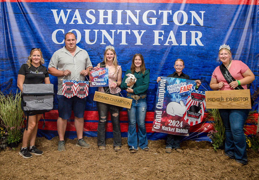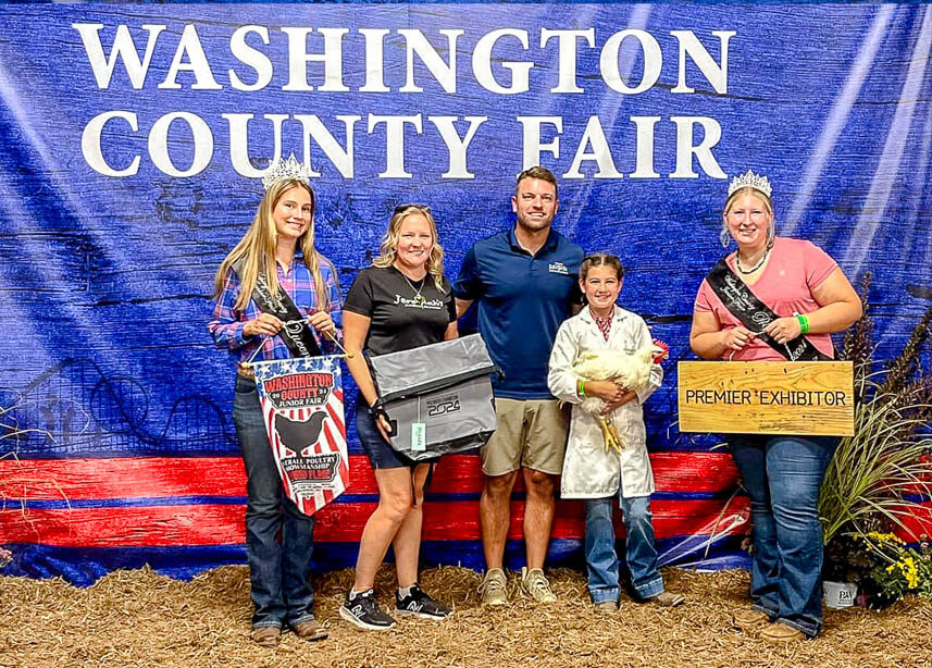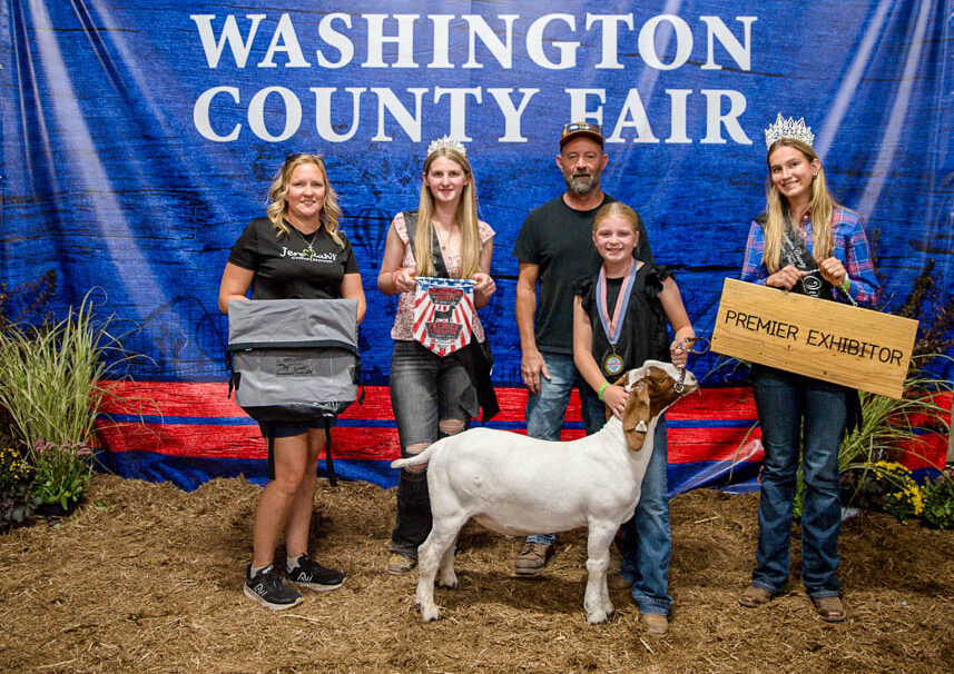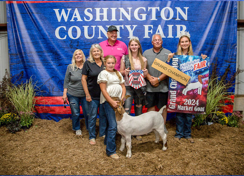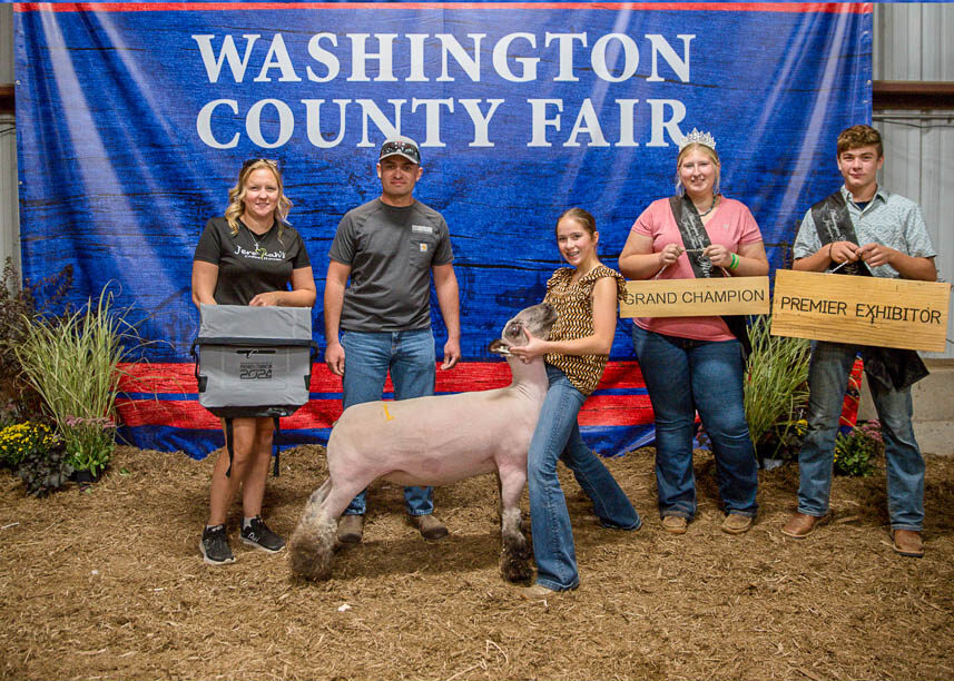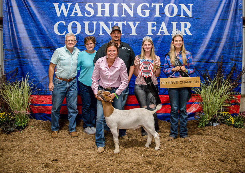 GRAND CHAMPION: Zoey Hindel | Bid: $1,150 | Buyer: Leslie Equipment Co.; RESERVE CHAMPION: Isabel Miller | Bid: $700 | Buyer: Fresh Start Floors, LLC