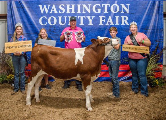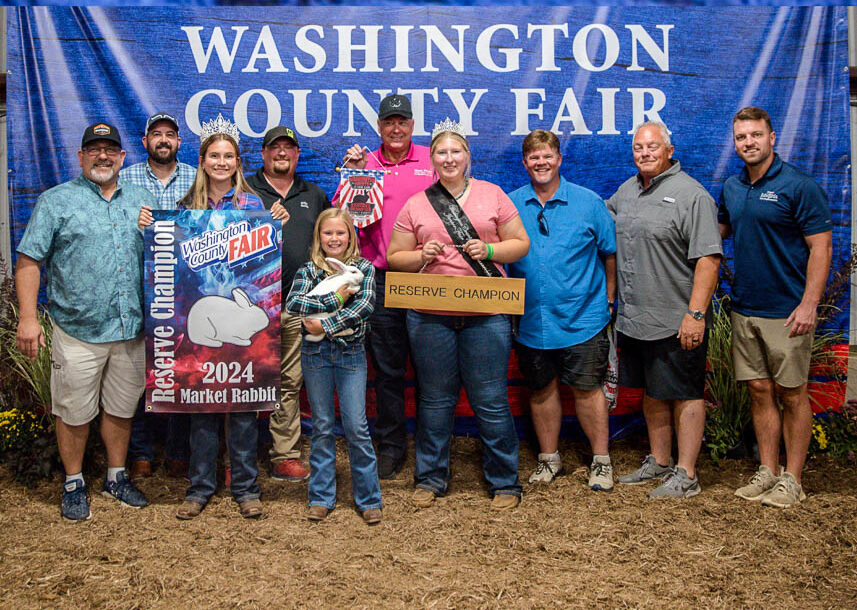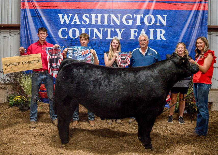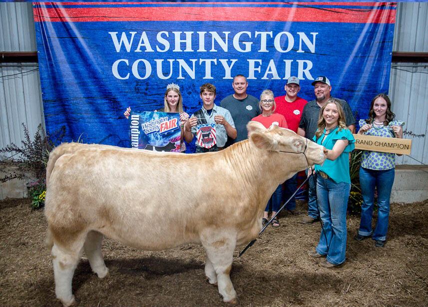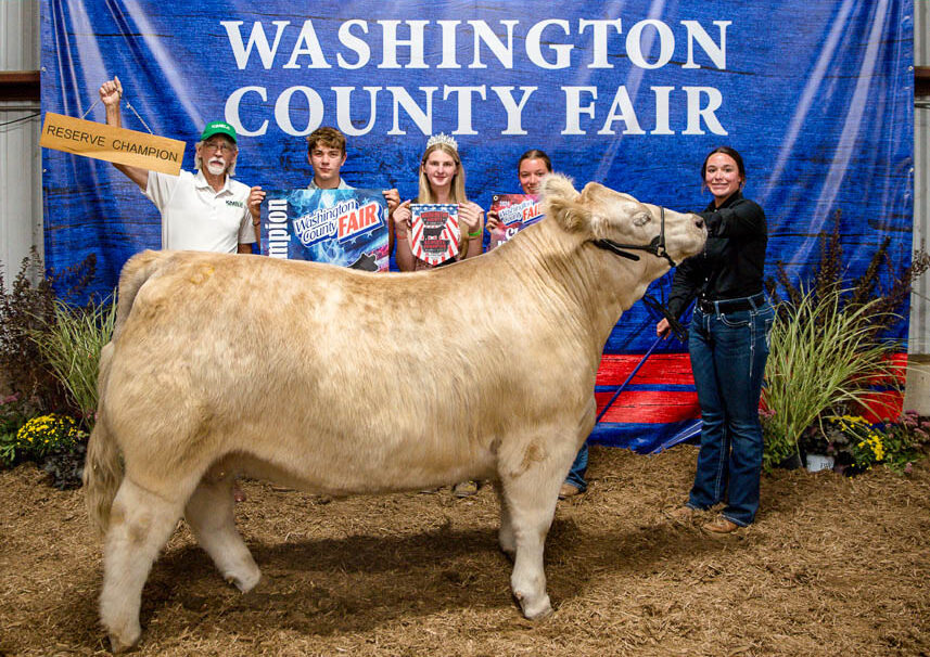 GRAND CHAMPION: Chloe Schweitzer | Bid: $2,600 | Buyer: Wood Heating and AC; RESERVE CHAMPION: Brenna Cole | Bid: $1,600 | Buyer: Kevin Ritter Bid: State Representative, Southeastern Ohio Port Authority, R. C. & Son Construction, Mark Porter Chrysler Dodge Jeep Ram, McKee Paving and Jay Edwards, State Representative