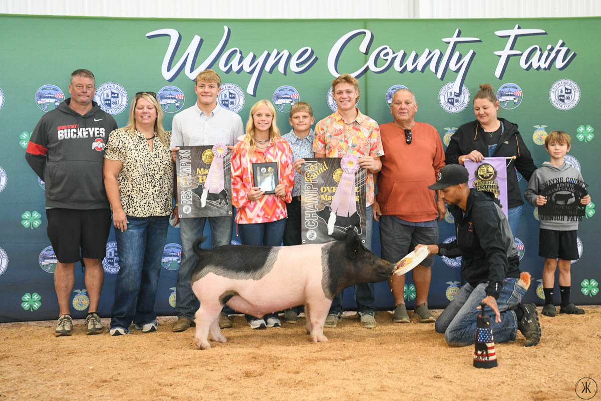 GRAND CHAMPION: Madelynn Baney | Bid: $2,000 | Buyer: Santmyer Energy, Wayne County Kiko’s Complete Auction Service; RESERVE CHAMPION: Tyler Zimmerly | Bid: $1,800 | Buyer: Beckler Welding and Beckler Shorthorns
