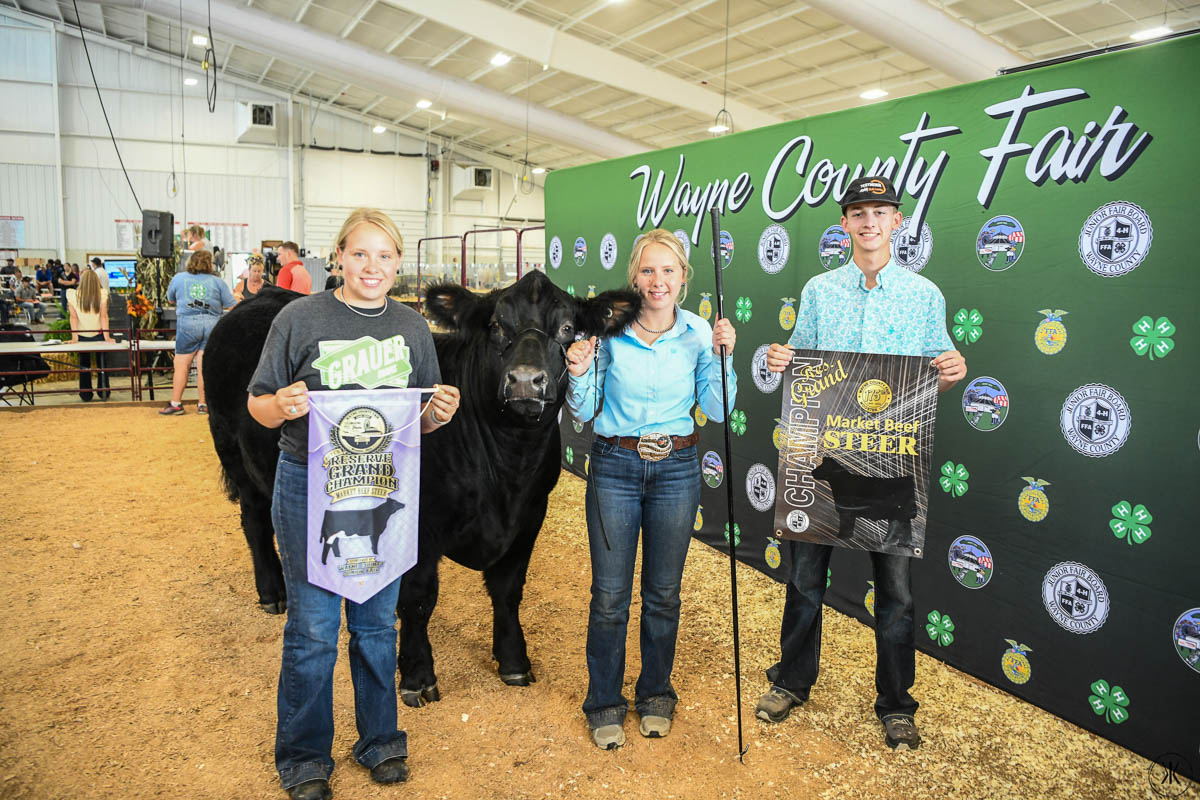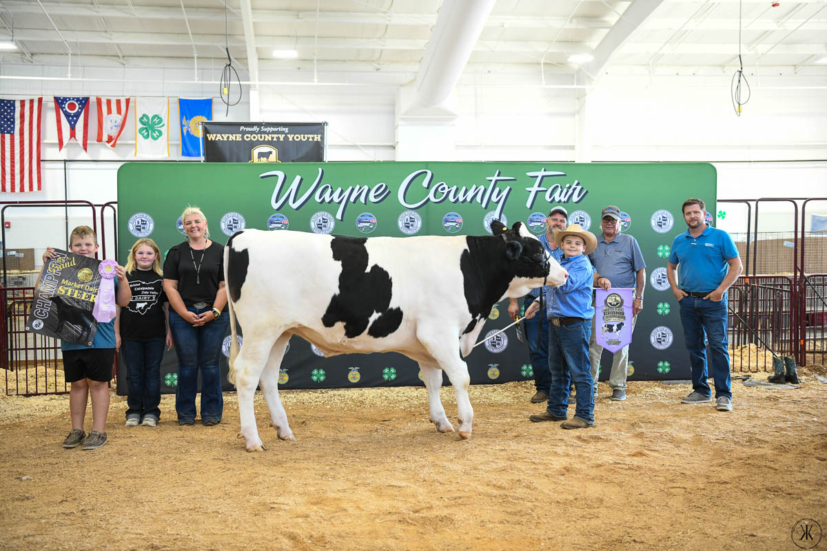 GRAND CHAMPION STEER: Owen Bailey | Bid: $26/lb | Weight: 1,381 lbs | Buyer: Pallotta Ford Lincoln; RESERVE CHAMPION STEER: Kya Csapo | Bid: $7/lb | Weight: 1,453 lbs | Buyer: Gasser Farms LLC; GRAND CHAMPION CARCASS: Aaliyah Roth | Bid: $11.50/lb | Weight: 958 lbs | Buyer: Wheeling & Lake Erie Railway; RESERVE CHAMPION CARCASS: Elliot Andrews | Bid: $13/lb | Weight: 906 lbs | Buyer: Clothing Warehouse Everything Surplus