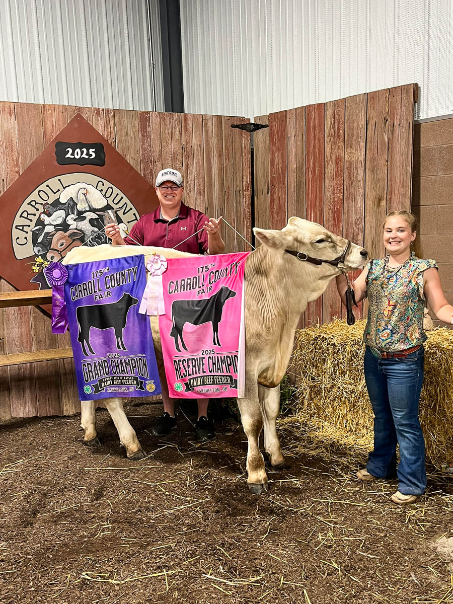 GRAND CHAMPION: Grant D Thompson | Bid: $8/lb | Weight: 1,340 lbs | Buyer: Loudon Ford; RESERVE CHAMPION: Jenna Wright | Bid: $14.50/lb | Weight: 1,440 lbs | Buyer: The Joseph A. Jeffries Company; GRAND CHAMPION CARCASS STEER: Jack Martin | Bid: $9/lb | Weight: 695 lbs | Buyer: Don’s Custom Meats; RESERVE CHAMPION CARCASS STEER: Sarah Kampfer | Bid: $9/lb | Weight: 693 lbs | Buyer: Richardson Electric – An Allison Company; GRAND CHAMPION COUNTY BORN & RAISED: Henry Campbell | Bid: $7/lb | Weight: 1,262 lbs | Buyer: Kimble Recycling And Disposal; RESERVE CHAMPION COUNTY BORN & RAISED: Hannah Lucas | Bid: $7.50/lb | Weight: 1,276 lbs | Buyer: Infinity Natural Resources