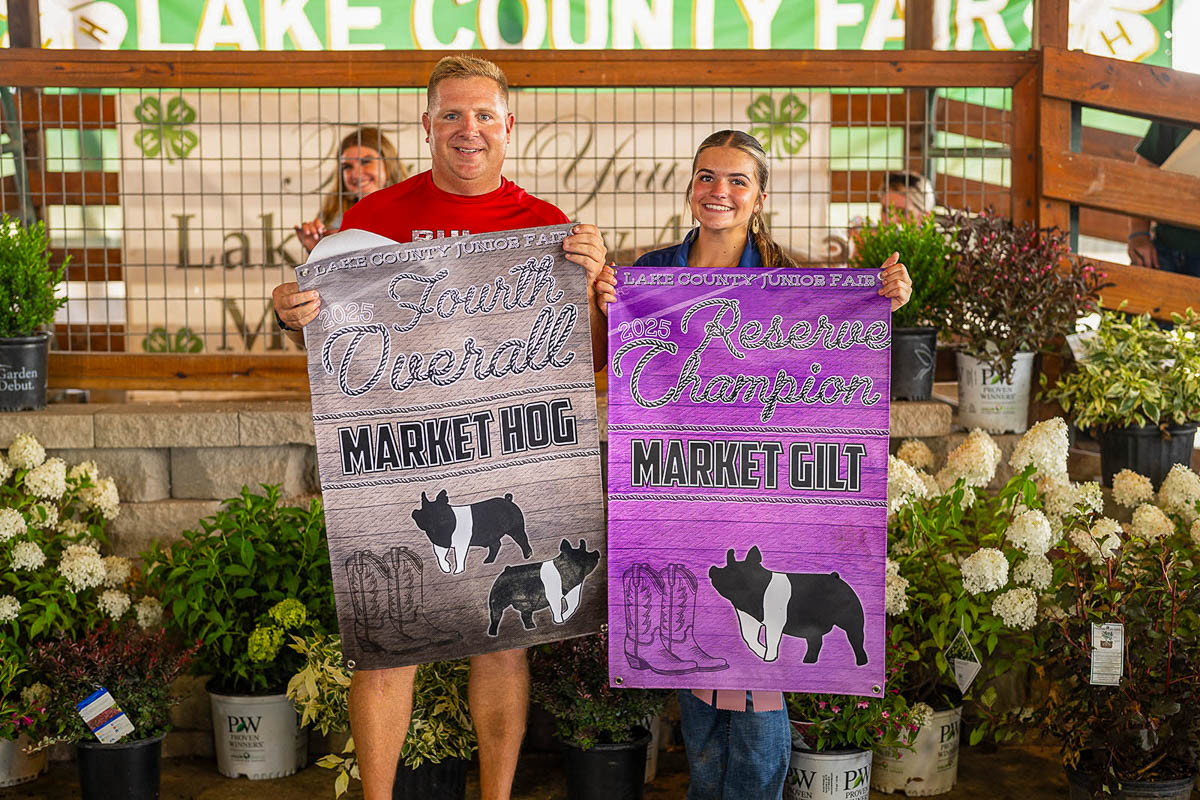 GRAND CHAMPION: Josie Goldy | Bid: $75/lb | Weight: 16.30 lbs | Buyer: Commissioner John Plecnik; RESERVE CHAMPION: Erin Platz | Bid: $32/lb | Weight: 18 lbs | Buyer: Commissioner Richard Regovich