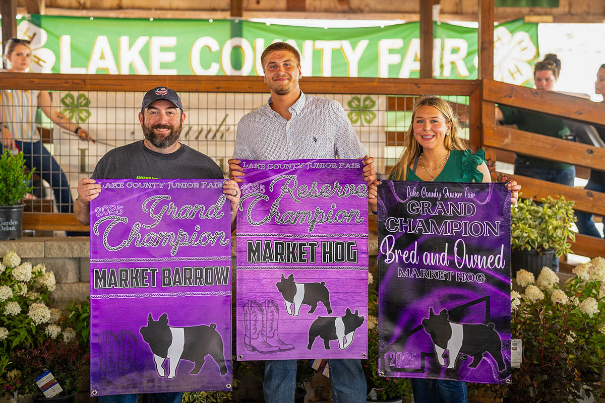 GRAND CHAMPION HOG/GRAND CHAMPION GILT: Michael McDonald | Bid: $8.50/lb | Weight: 279 lbs | Buyer: Kirtland Veterinary Hospital; RESERVE CHAMPION HOG/GRAND CHAMPION BARROW: Trent Taylor | Bid: $16/lb | Weight: 268 lbs | Buyer: Morris Beverage III; RESERVE CHAMPION GILT: Alivia Somrak | Bid: $10/lb | Weight: 244 lbs | Buyer: Deming Enterprises; RESERVE CHAMPION BARROW: Mac Schwartz | Bid: $21/lb | Weight: 256 lbs | Buyer: 1720 Properties; GRAND HOG CARCASS: Caiden Knight | Bid: $15/lb | Weight: 204 lb | Buyer: Morris Beverage III; RESERVE HOG CARCASS: Lorelye Budzicki | Bid: $6.50/lb | Weight: 225 lbs | Buyer: Walker Bros.; GRAND HOG PROJECT: Jackson Taylor | Bid: $8/lb | Weight: 220 lbs | Buyer: Richard Radcliffe; RESERVE HOG PROJECT: Trent Taylor | Bid: $6.50/lb | Weight: 240 lbs | Buyer: North Ridge Marathon