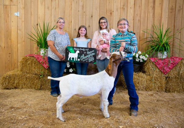GRAND CHAMPION: Madelynn Helch | Bid: $10/lb | Buyers: Watson’s Inc. and NW Sales Co, LLC; RESERVE CHAMPION: Reagan Rader | Bid: $10.75/lb | Buyers: Miller’s Mercer Livestock and The Goat Bar and Grill