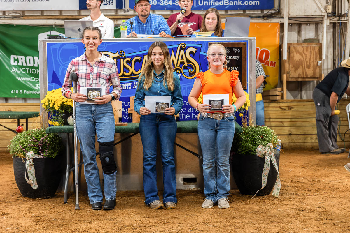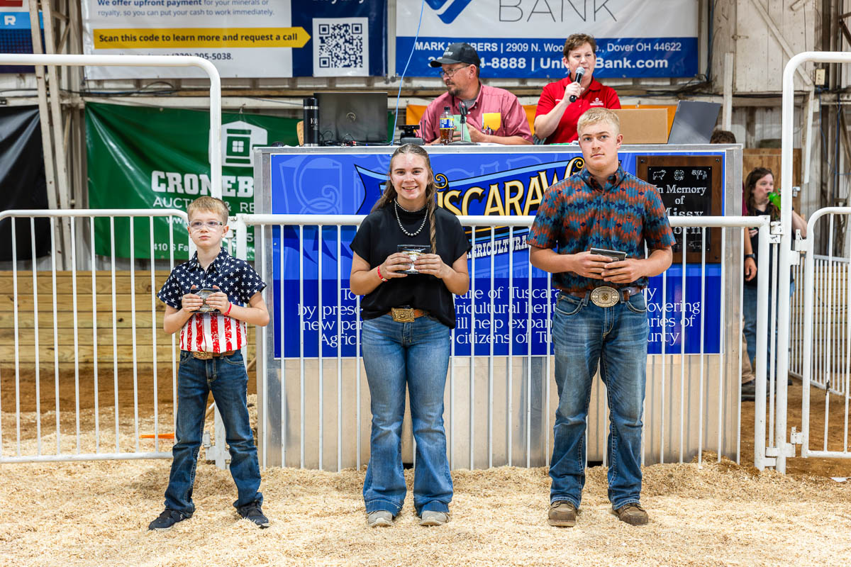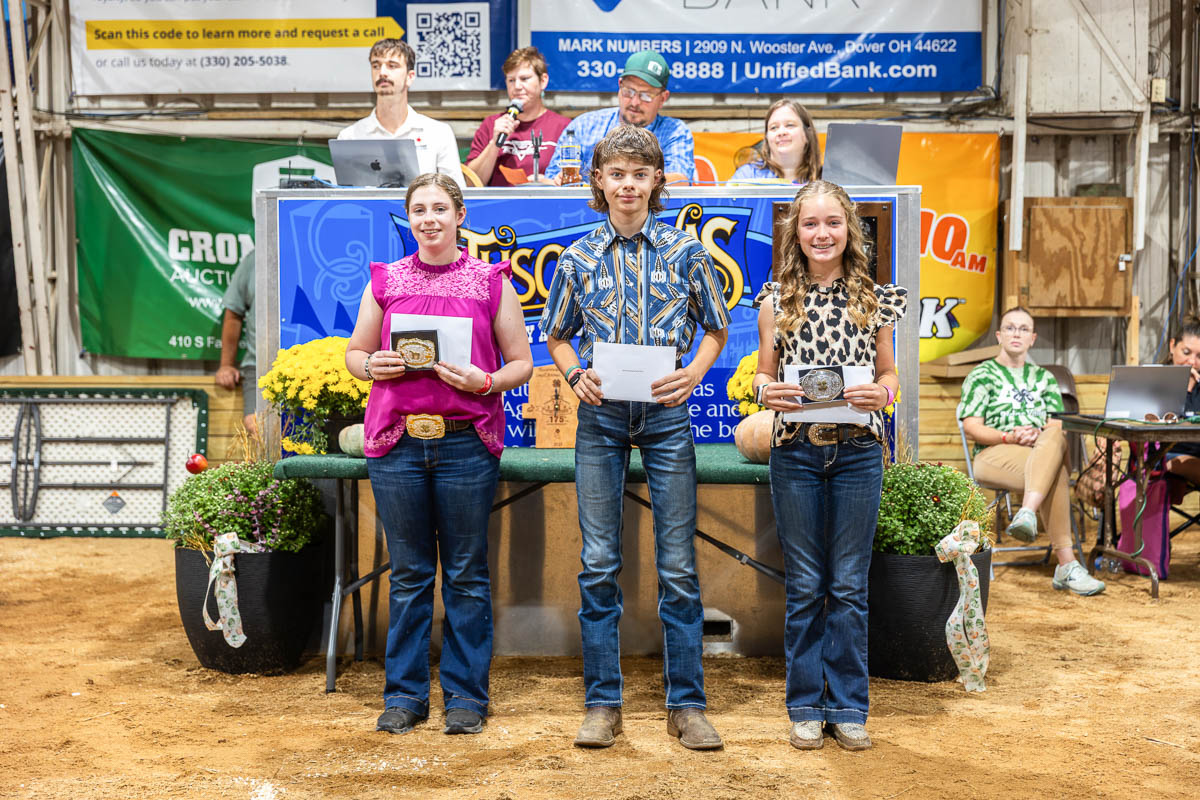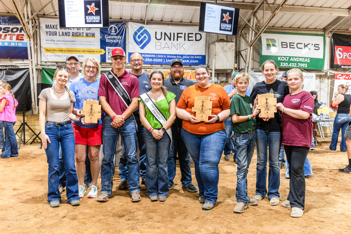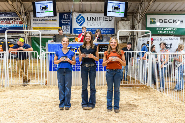 GRAND CHAMPION: Raina Fair | Bid: $950 | Buyer: L & O Livestock / Cory and Michelle Sproul; RESERVE CHAMPION: Aria Valdinger | Bid: $2,750 | Buyers: Hamilton Insurance, Slentz Heating and Cooling and Jerry & Sandra Valdinger