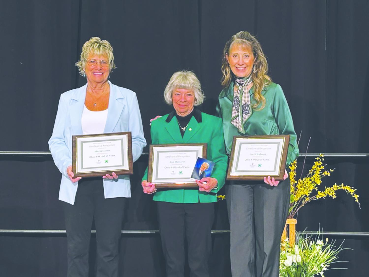COLUMBUS — Three people were inducted into the Ohio 4-H Hall of Fame during the Ohio 4-H Conference March 21, held at the Greater Columbus Convention Center.