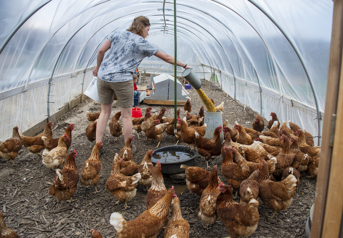 Their first year at the new place, they just raised laying hens and Thanksgiving turkeys. Last year, they finished about 800 meat chickens — the most they’ve ever done — in addition to pigs, turkeys and their laying hens. They usually keep about 100-150 hens at a time.