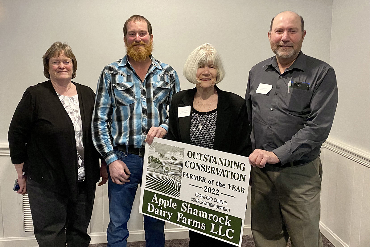 The Outstanding Conservation Farmer of 2022 award went to Apple Shamrock Dairy Farms for the outstanding conservation practices in place at the farm, including the closed loop practice of using sand as animal bedding.