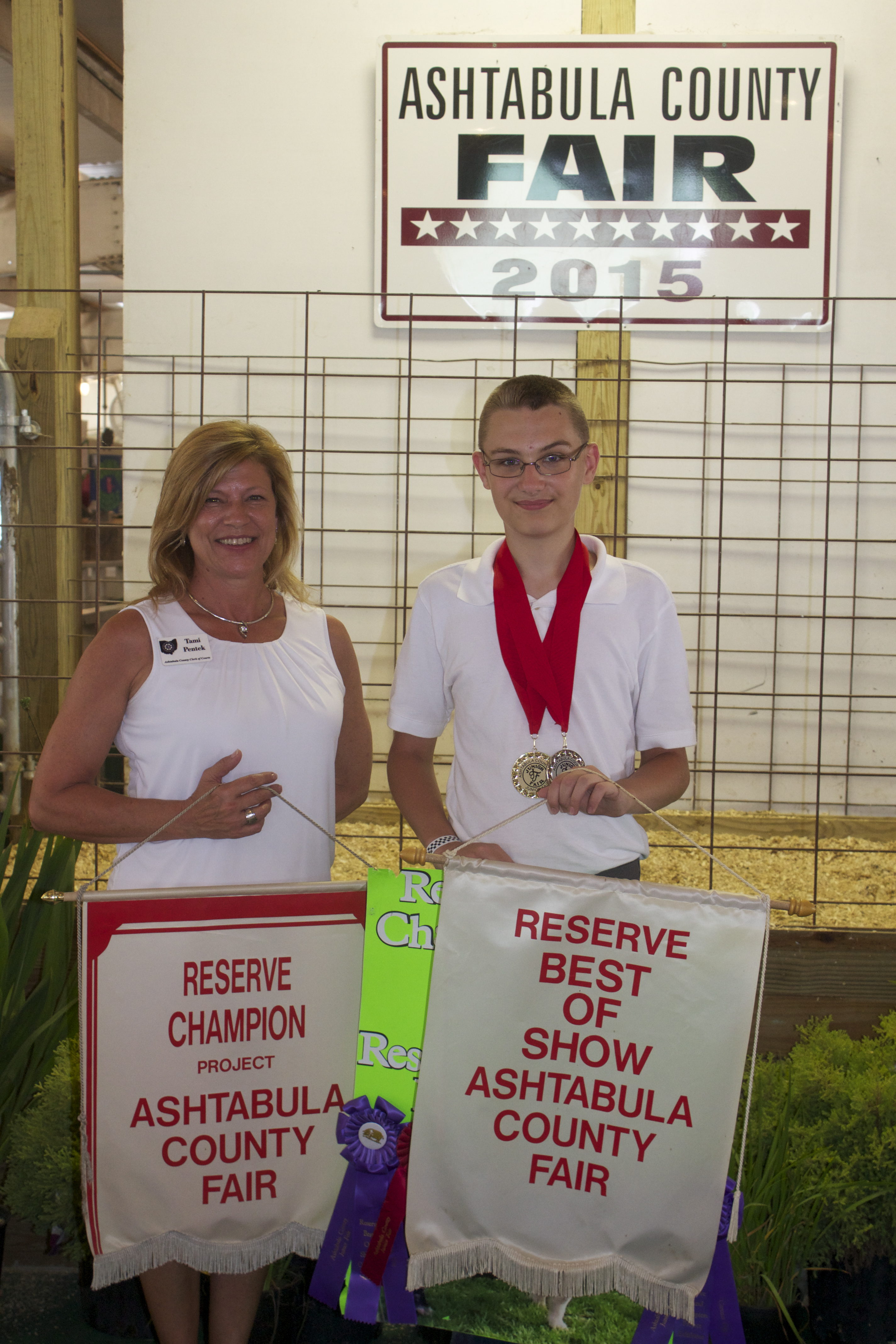 Preston Gibbons brought home the title of reserve champion hog carcass and reserve best of show. The project weighed 170 pounds and sold for $7.75 a pound to Ashtabula County Clerk of Courts Tami Pentek.
