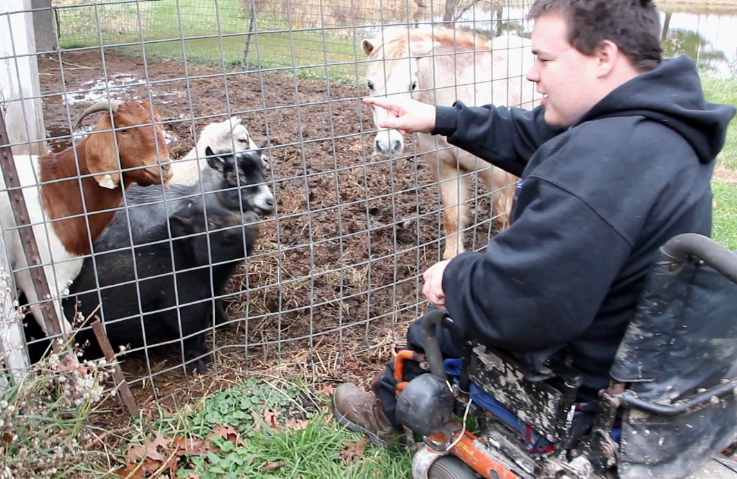 Austin wheeled around the side of the barn to show me his Boar goat. He assured me that anything he raises has to have a purpose.