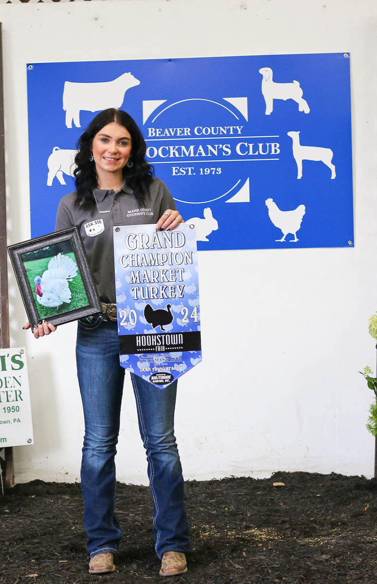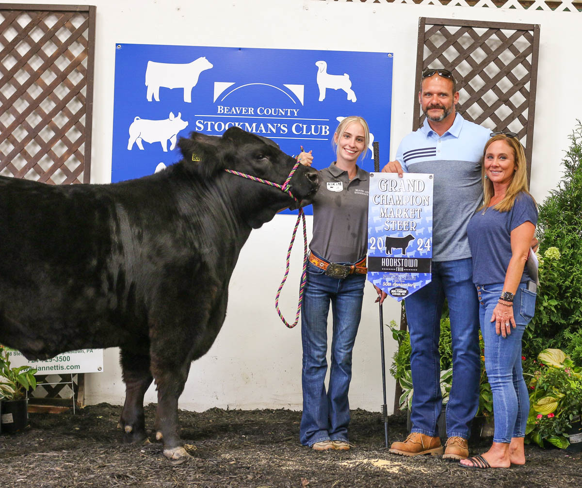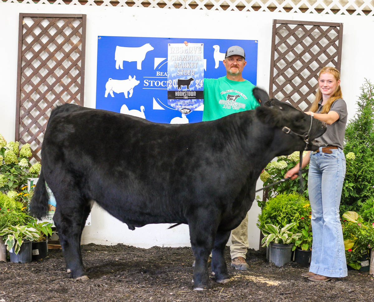 GRAND CHAMPION: Jillian Tetrault | Bid: $4.75/lb | Weight: 1,415 lbs | Buyer: Elite Gas Field Services; RESERVE CHAMPION: Isabel Woodling | Bid: $6/lb | Weight: 1,465 lbs | Buyer: Woodling, Pettit, Lavezoli & Olexa
