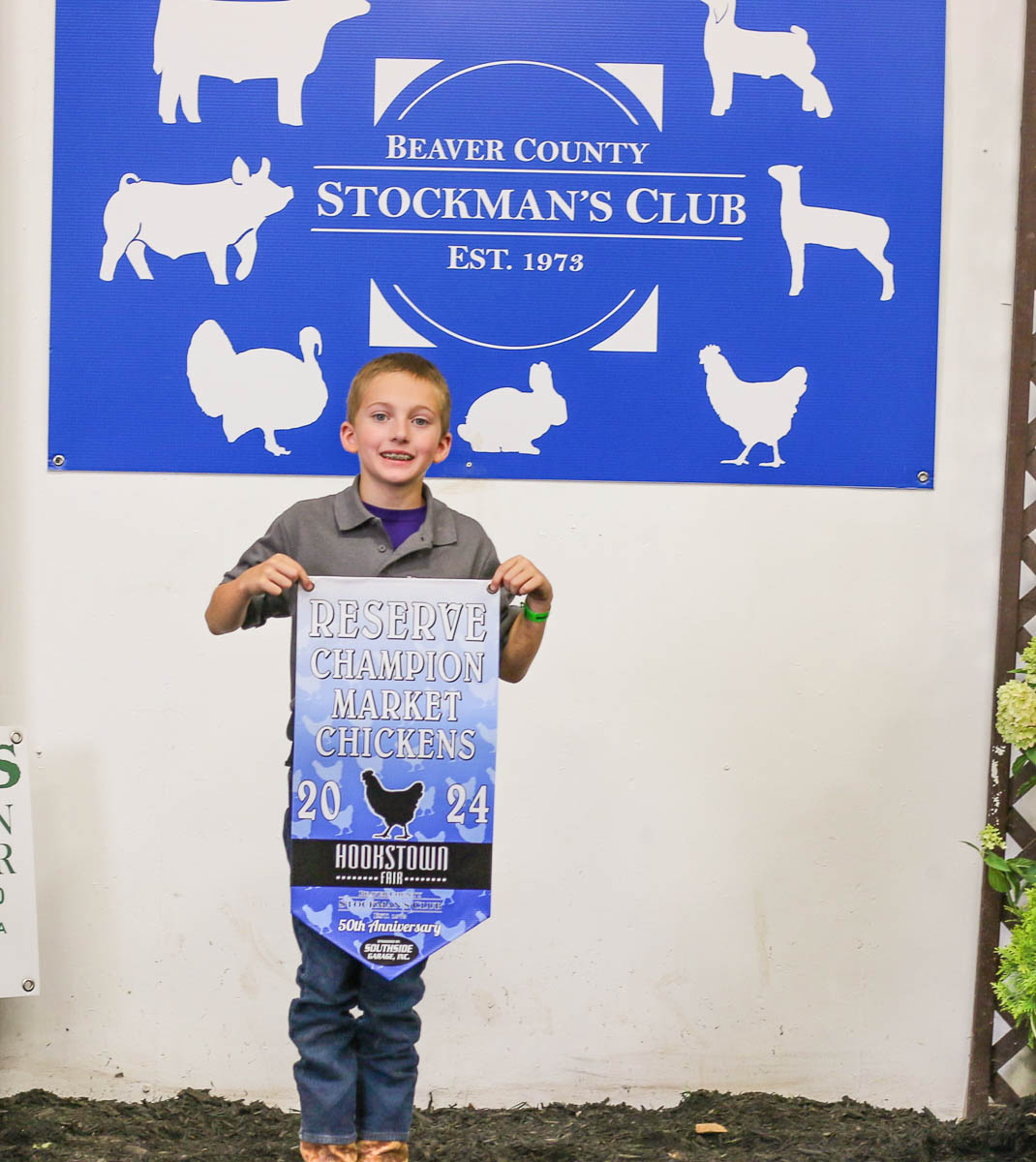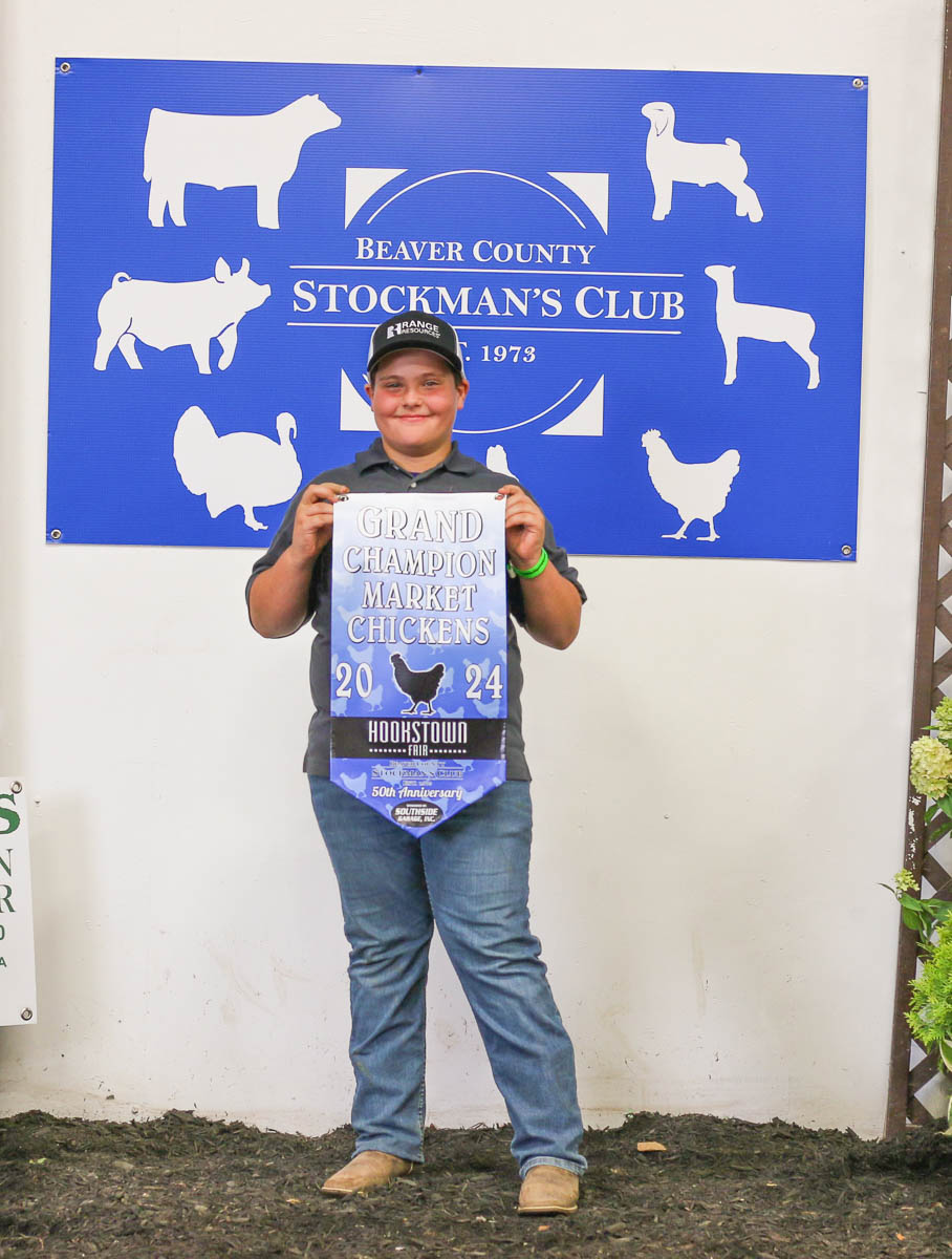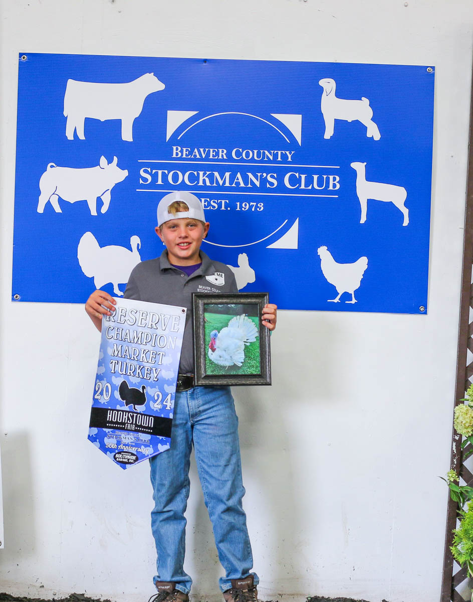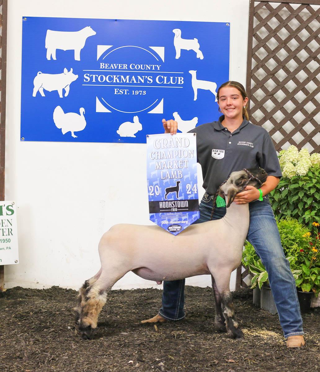 GRAND CHAMPION: Ryan Groff | Bid: $27.50/lb | Weight: 15.8 lbs | Buyer: Bioni Industries; RESERVE CHAMPION: Zoe Norwood | Bid: $16/lb | Weight: 13.4 lbs | Buyer: Welter Meats