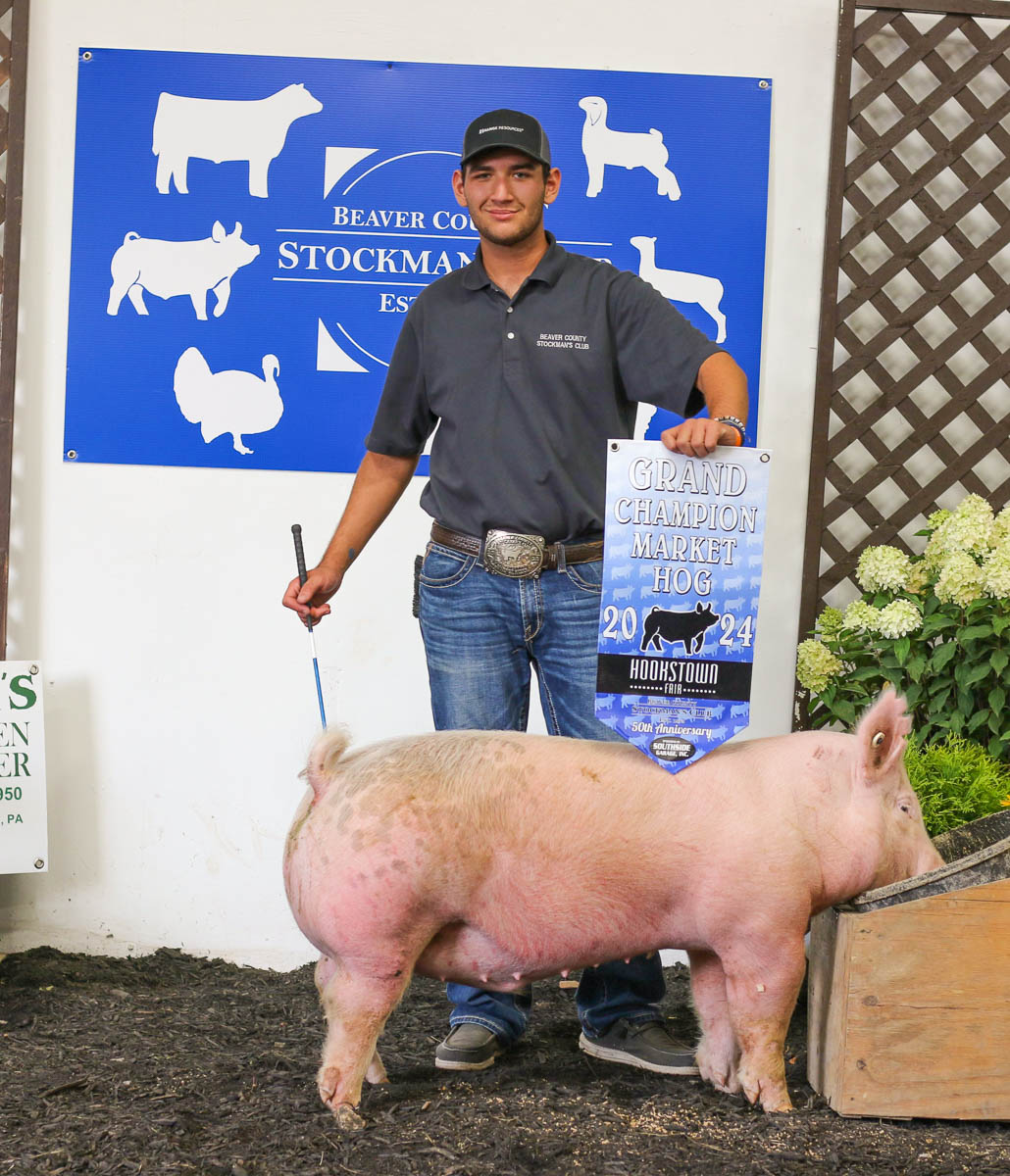 GRAND CHAMPION: Nathan Baron | Bid: $14/lb | Weight: 268 lbs | Buyer: Bioni Industries; RESERVE CHAMPION: Alivia Logan | Bid: $7.50/lb | Weight: 282 lbs | Buyer: Elite Gas Field Services