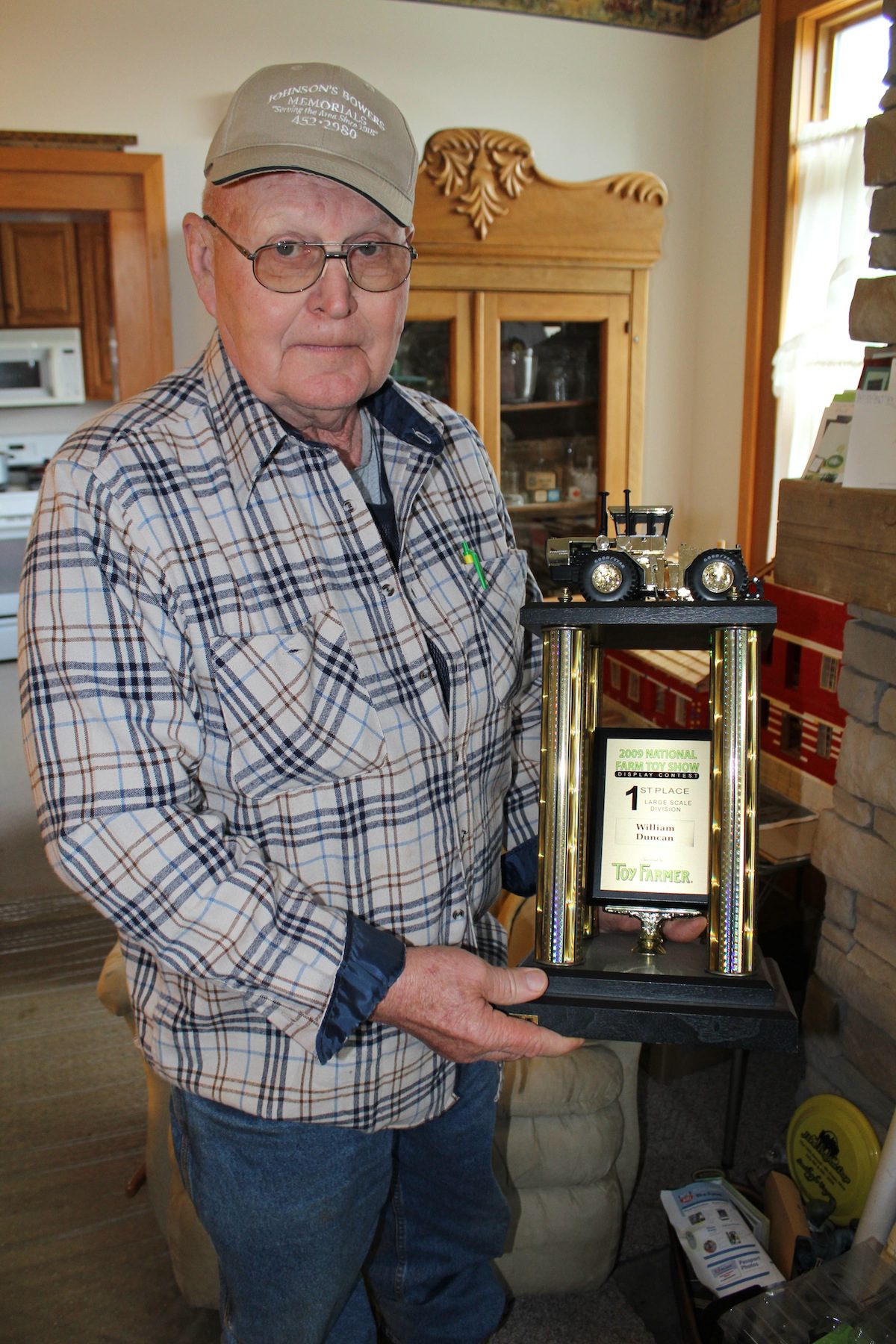 Duncan, who is 75, has spent a lifetime collecting Oliver and Cockshutt toy tractors. The models, of which he has nearly 200, flood his cabinets and curios, tabletops and a good portion of his floor.