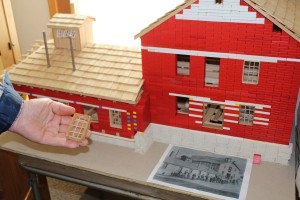 One of Bill’s ongoing projects, in addition to the diorama, is a model Cockshutt manufacturing plant that he’s building out of Lego blocks, with wood shingles for the roof that he cut to fit by himself. There are more than 1,000 wooden shingles, all neatly placed.