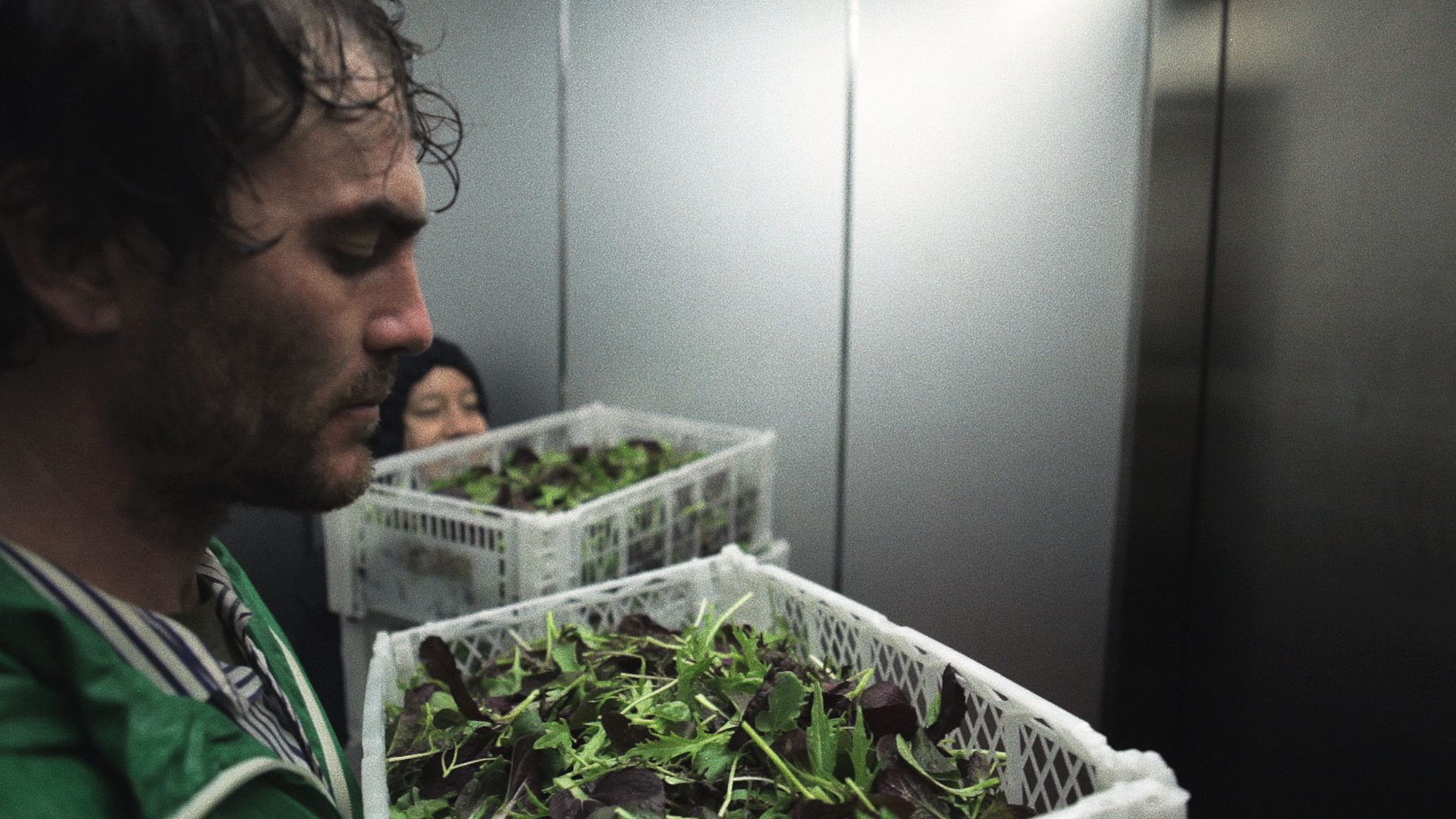In Tyburski’s film, we see urban farmers take elevators to the fields, just as traditional farmers drive pickups to theirs. It’s the difference between stairwells and country roads.