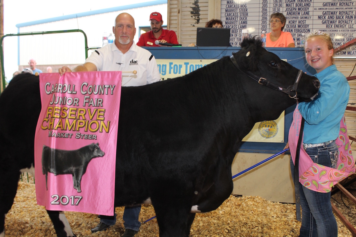 Shelbi Frase sold her 1,416-pound reserve champion market steer for a record $5.50 a pound to Jim Rhodes of dac Vitamins and Minerals.