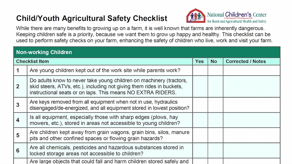 “Taking 10 minutes to read this checklist will give parents safety strategies to help ensure that their children reap the many benefits of farm life while staying safe.”