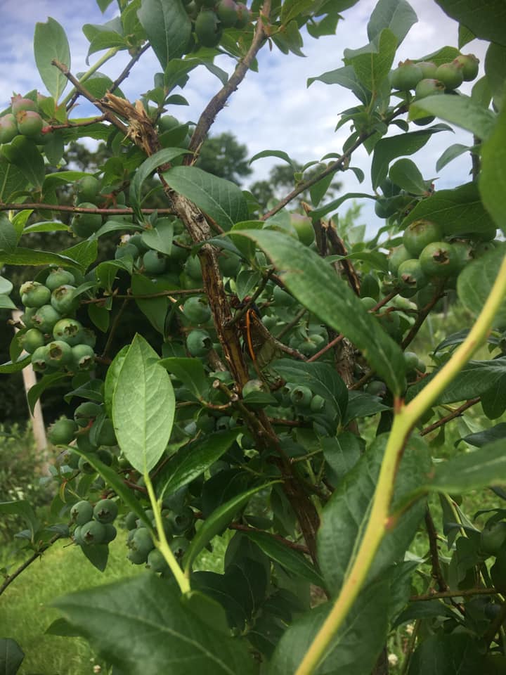Usually they put up bird netting trellis on the whole patch, but after he didn’t see bird damage this year, they skipped that step. King assumes now that the birds were too full from eating cicadas to go after the blueberries.
