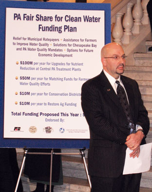 Pennsylvania Farm Bureau’s State Governmental Relations Director Joel Rotz participated in a news conference at the state capitol to help unveil the Pennsylvania Fair Share for Clean Water Plan.