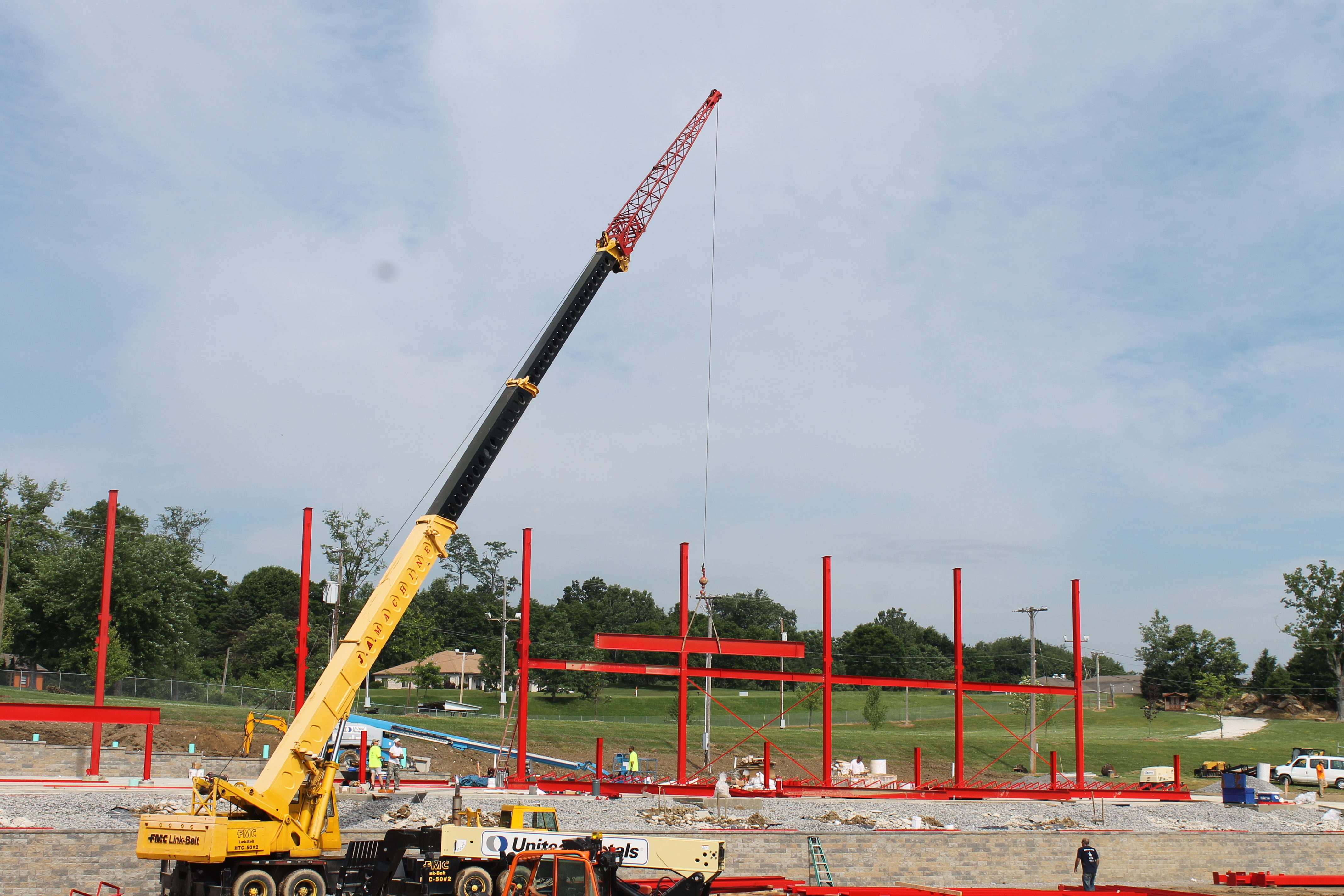 Wolf said the steel erector contractor arrived on time and was putting the steel beams up for the grandstand June 20.
