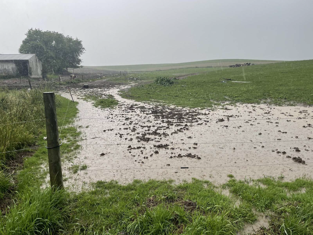 Their silage bags were stored in one of the few flat areas on their farm that just happened to be across the township road from their barn.