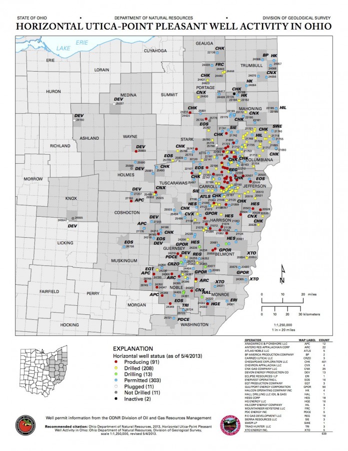 So far, Consol Energy has drilled 200 horizontal shale wells, between the Marcellus and Utica, and there are 640 active gas-related permits issued to Consol. He said there are wells on the books that will contain 10 well bores on one pad.