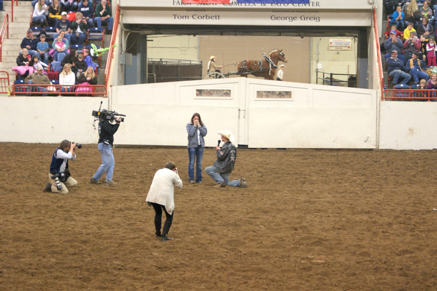 During the first performance of the Pennsylvania High School Rodeo at the Pennsylvania Farm Show Jan. 5, 20-year-old Kuhl proposed.