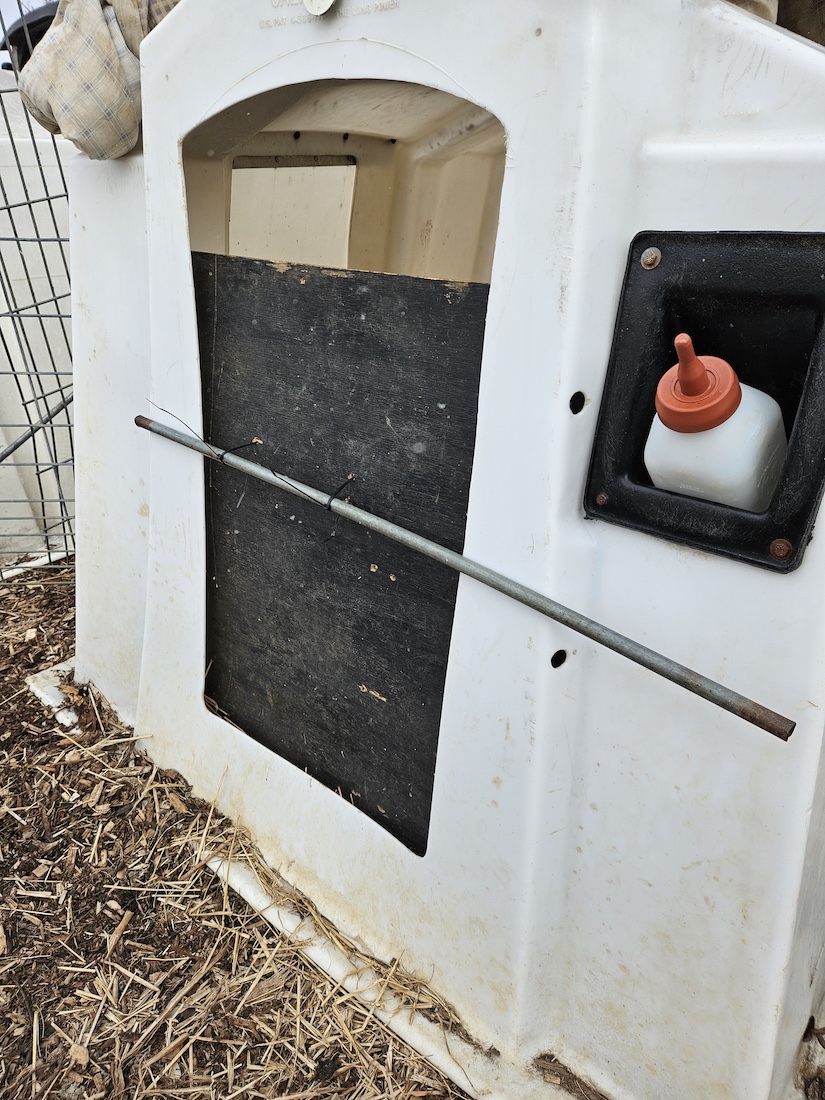 Calf Hutch Accessory to Keep Calves Warm in Winter by Mary Creek of Palmyra Farm in Hagerstown, Maryland