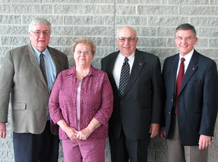 Veterinarians Jim Kinder (left) and Bobby Moser (right) welcomed Wayne Dalton into Ohio State’s Dairy Science Hall of Service at the annual dairy banquet for the Department of Animal Sciences and the Buckeye Dairy Club May 10. Joining Dalton was his wife and supporter, Jane.
