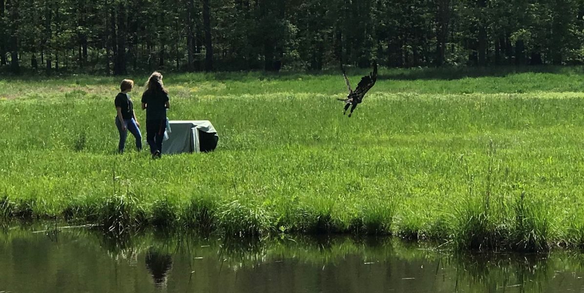 Riley Walsh and Carol Holmgren releasing a juvenile eagle near Pymatuning Reservoir. Photo credit: Larry Slonski