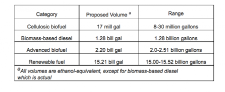 The proposal proposes a level of 15.21 billion gallons total renewable fuel volumes for 2014.