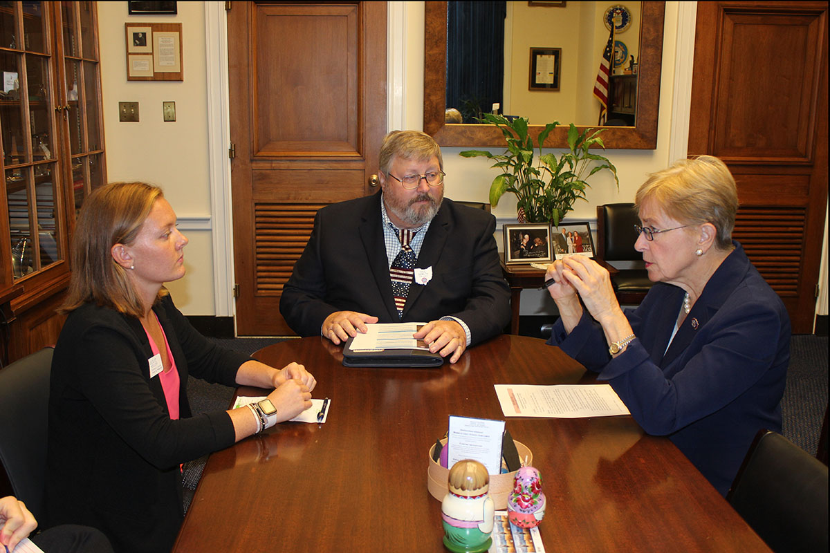 During the OFBF Washington D.C. Leadership Experience, participants met with members of Congress to discuss agricultural issues. Julie Holler, a member of the Ohio Farm Bureau’s Young Agricultural Professionals group representing Trumbull County, and Paul Demuth, president of the Erie County Farm Bureau, visited Rep. Marcy Kaptur.