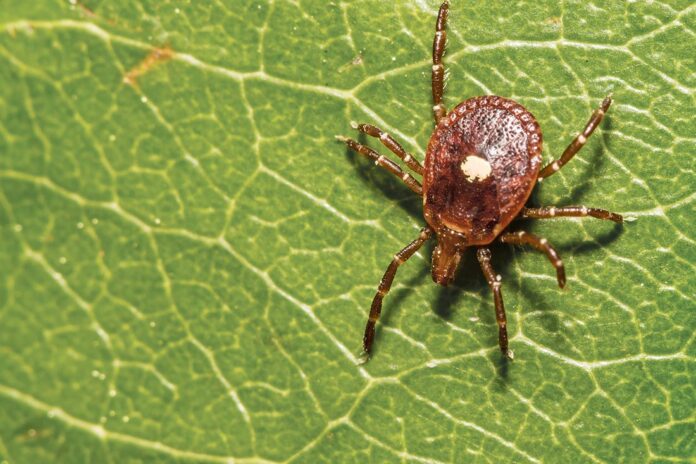 According to the Pennsylvania Department of Environmental Protection, lone star ticks (Amblyomma americanum) have three developmental stages. Newly hatched larvae — about the size of the head of a pin — have six legs. They molt and become an eight-legged nymph, about the size of a poppy seed. After feeding, they will molt again to become an eight-legged adult. From larvae to nymph takes two to four weeks; from nymph to adult takes about two months. Females are the largest and are distinguished by a white dot on their back. Adult males are slightly smaller than adult females. Females lay eggs from seven to 16 days after feeding and can produce 3,000 to 8,000 eggs. Forsyth said that while some species of tick feed on small mammals and rodents, the keystone species for the lone star tick is deer.
