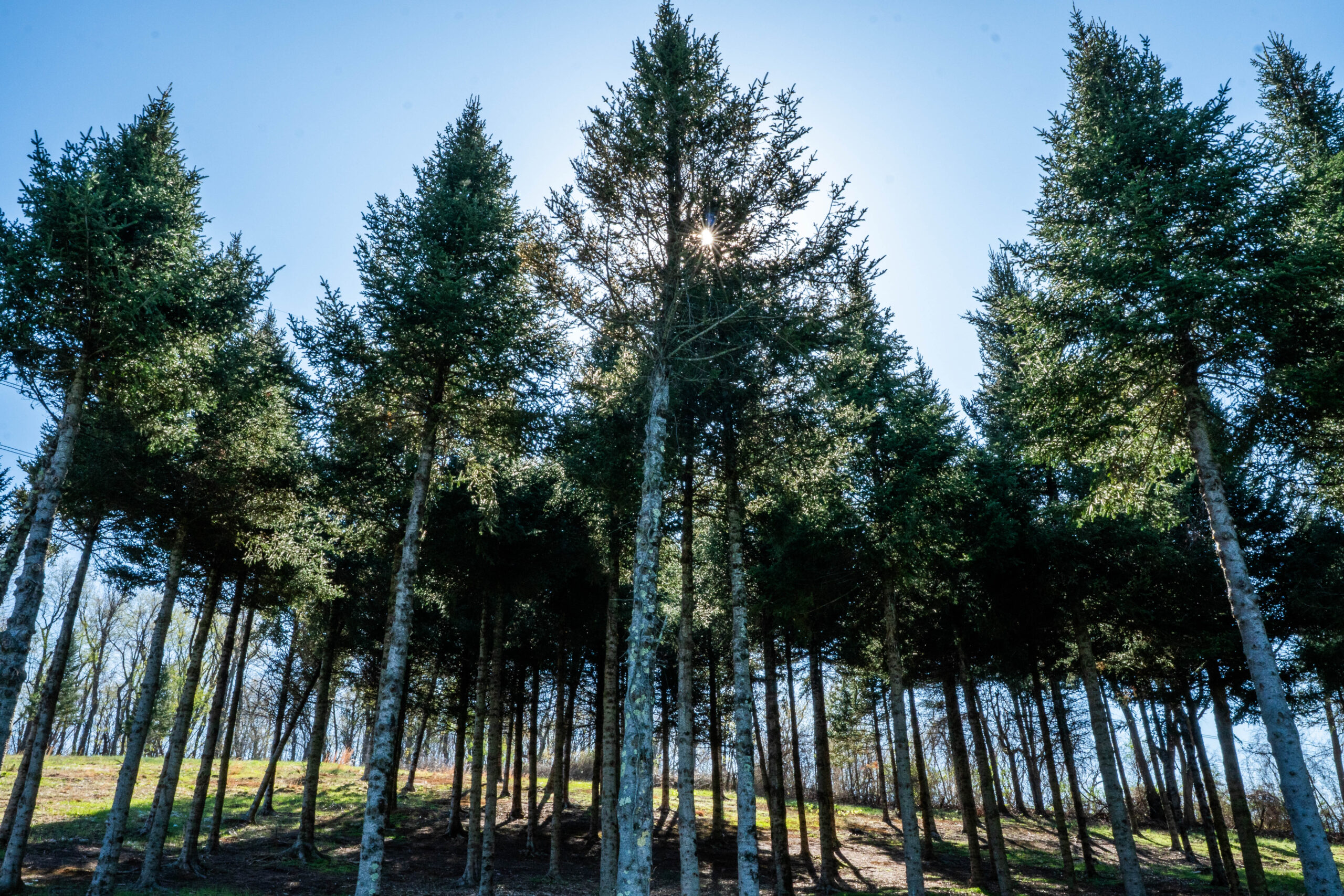 On one side of the tower sits a group of Canaan Fir trees, and on the other side of the transmission tower sits the other half; in the middle is a blank plot of grass where these seed orchard trees used to fill out the whole hillside.